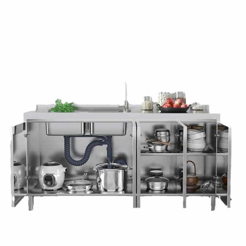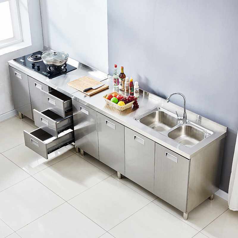 家用小户型304整体大容量加厚不锈钢橱柜免安装一体式厨房灶台柜