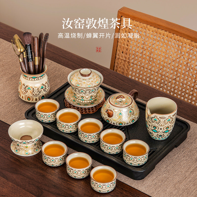 敦煌汝窑功夫茶具套装家用办公室高档轻奢整套泡茶壶茶杯喝茶专用