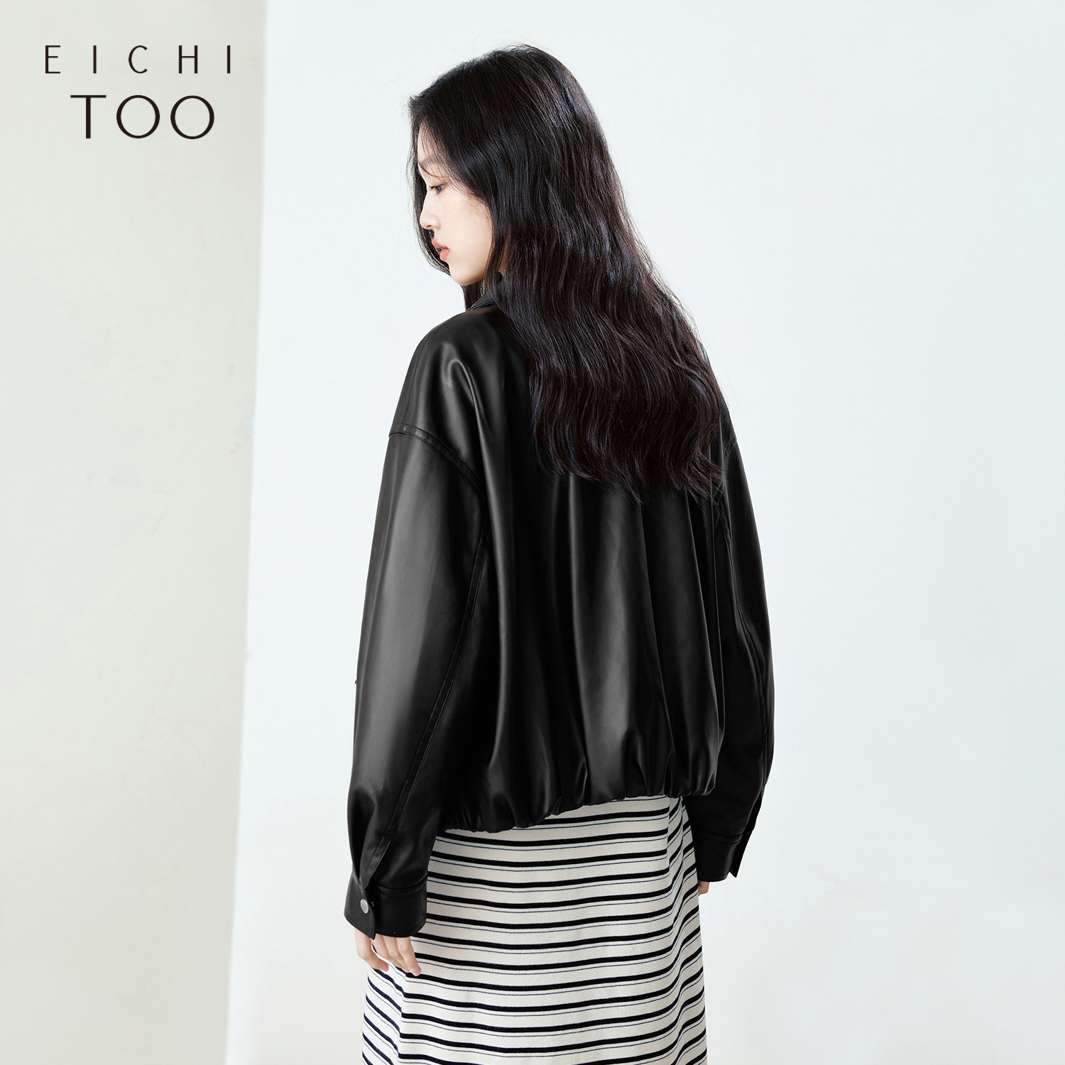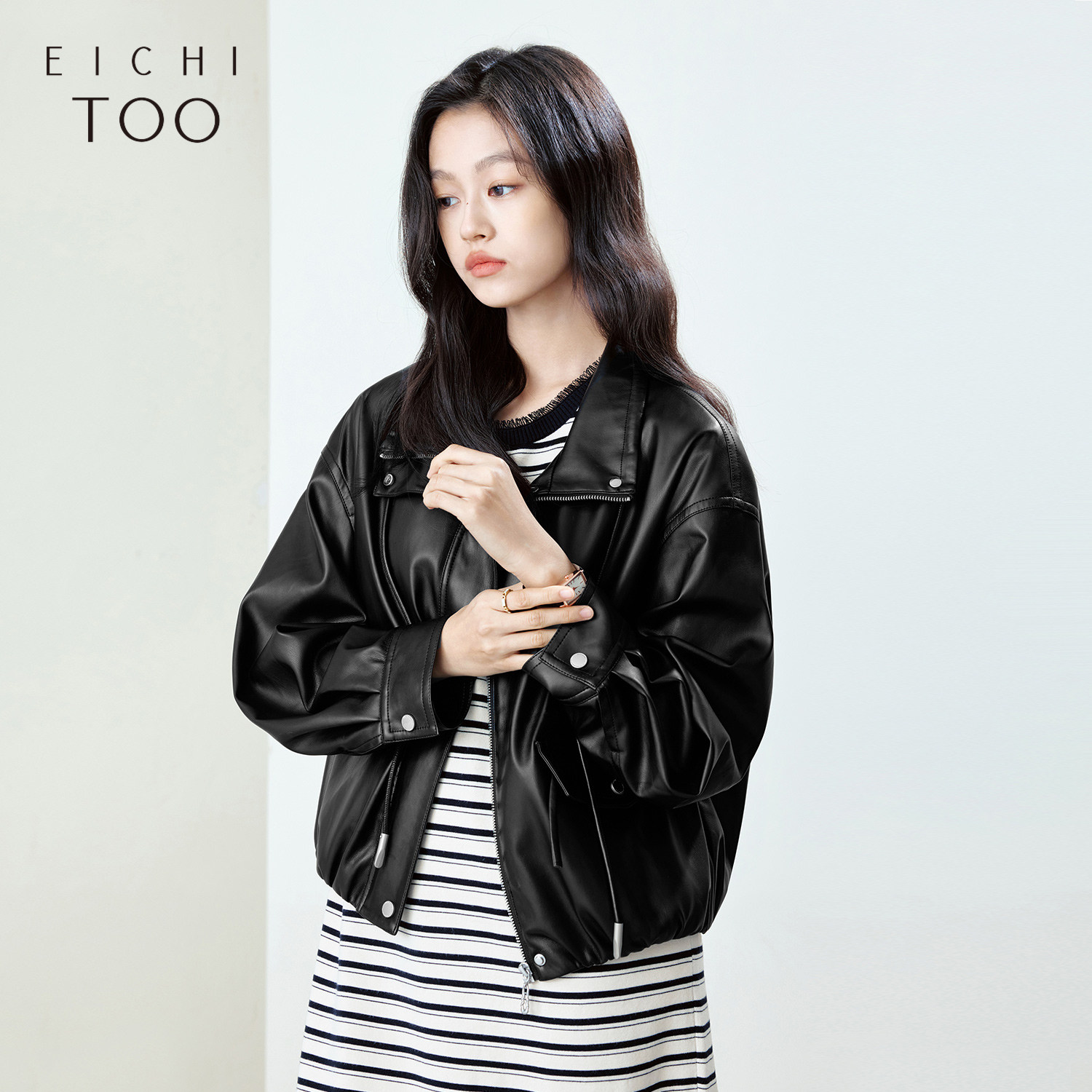 爱居兔复古黑色皮衣外套女2025年秋季新款宽松机车休闲短款皮夹克