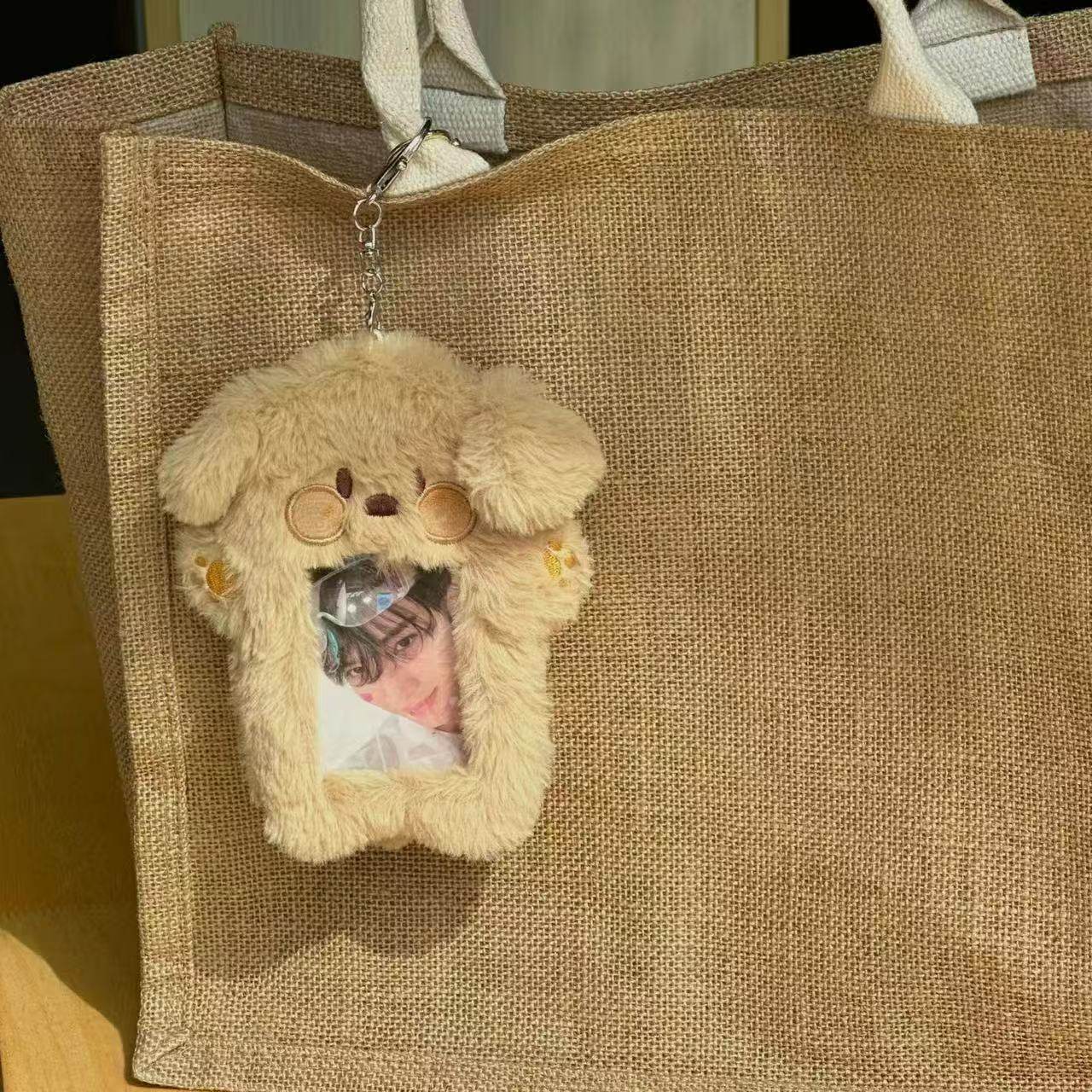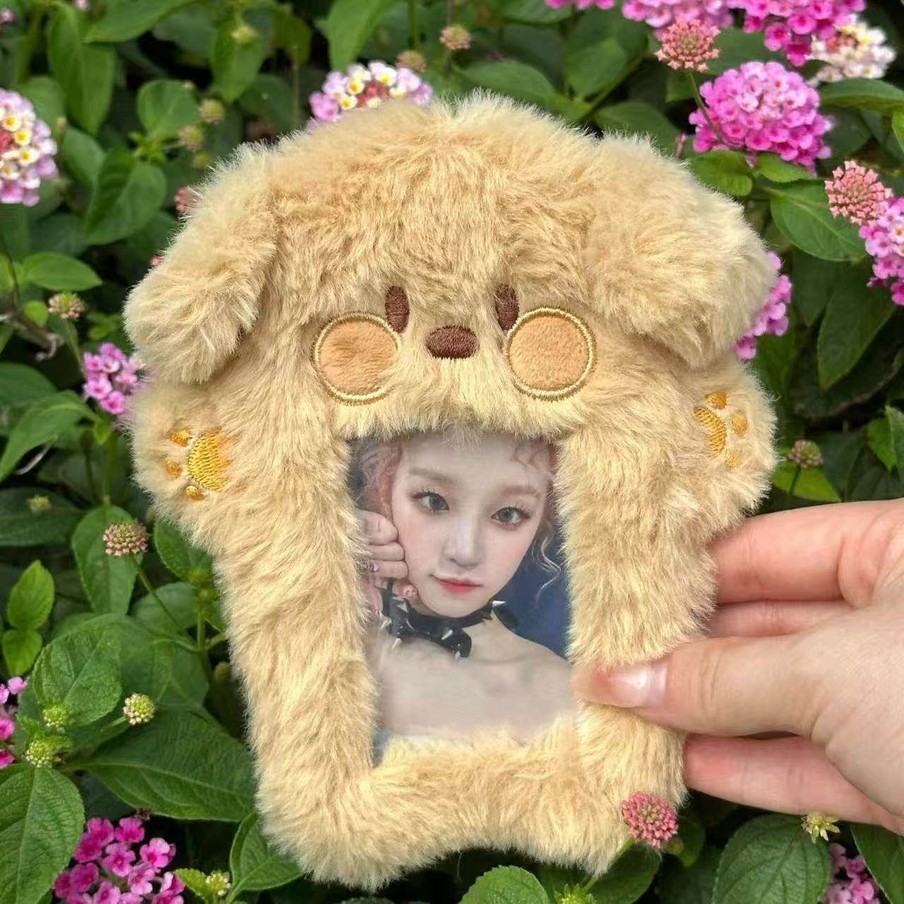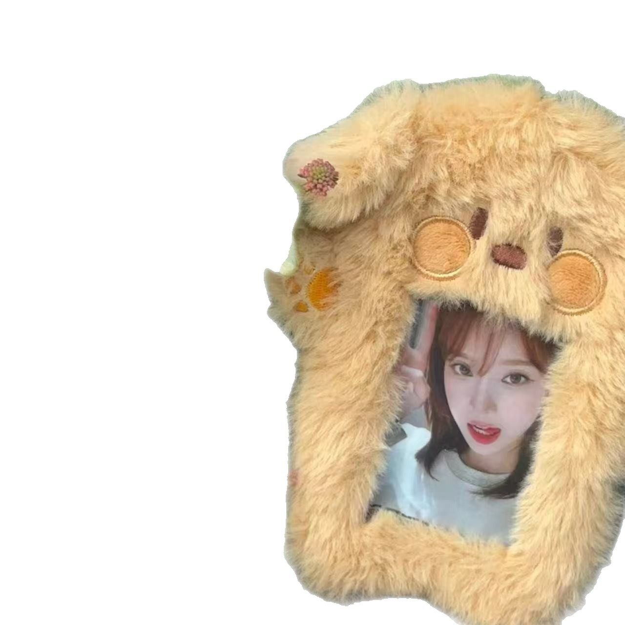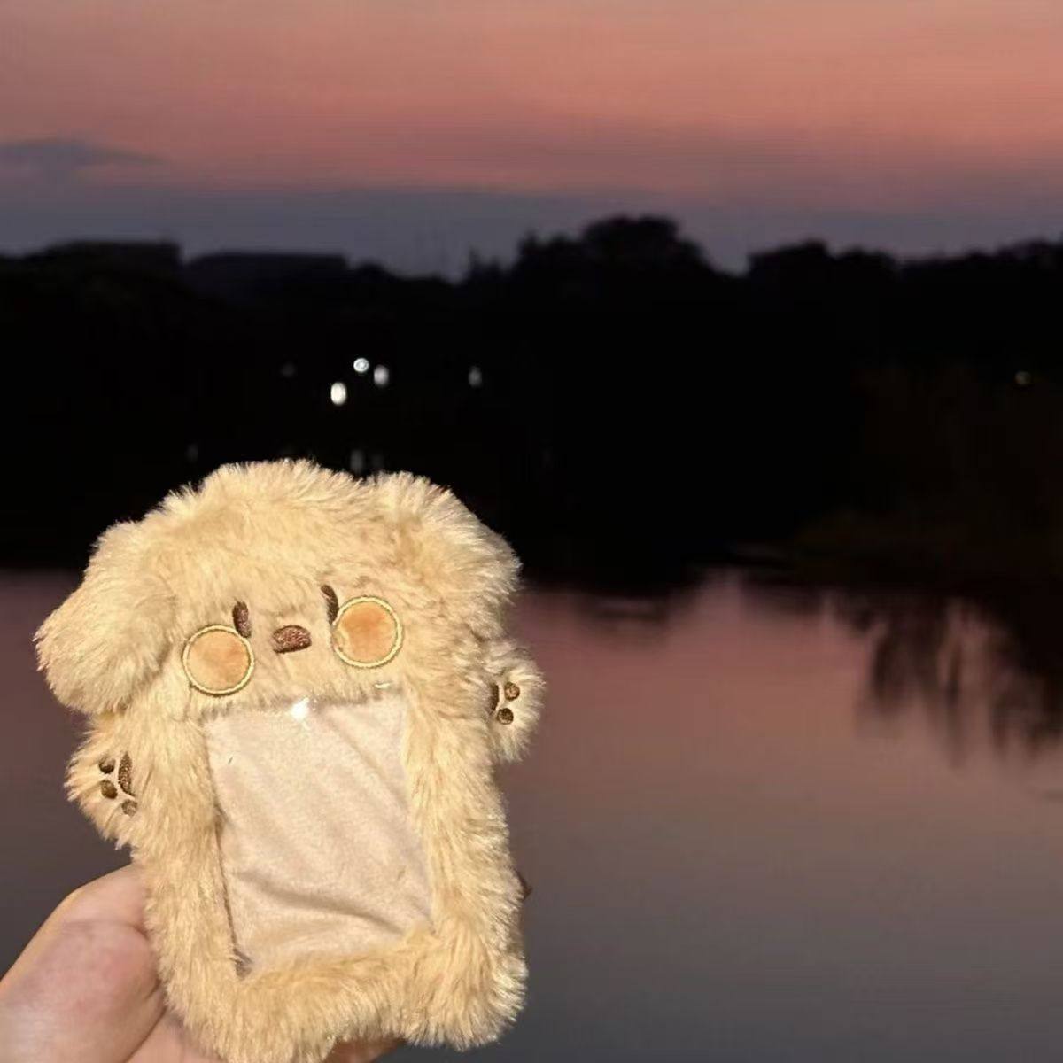 可爱毛绒小狗卡套3寸追星小卡照片学生饭卡公交卡收纳套包包挂件带挂绳校牌工厂牌钥匙扣卡套一体