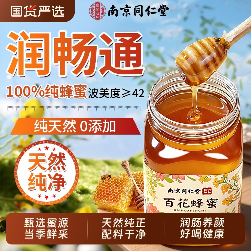 同仁堂百花蜂蜜纯正天然非野生土蜂巢蜜露礼盒官方旗正品椴树蜂蜜