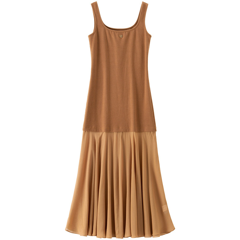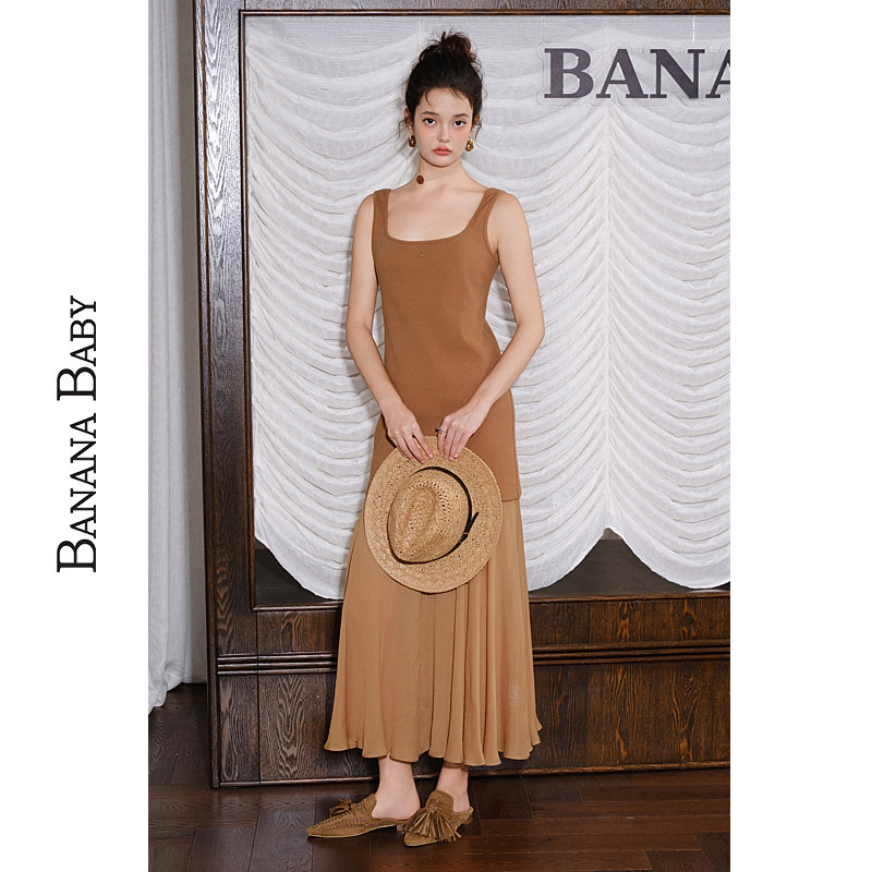 BANANA BABY2026年春季新款复古雪纺拼接背心长裙女荷叶边连衣裙
