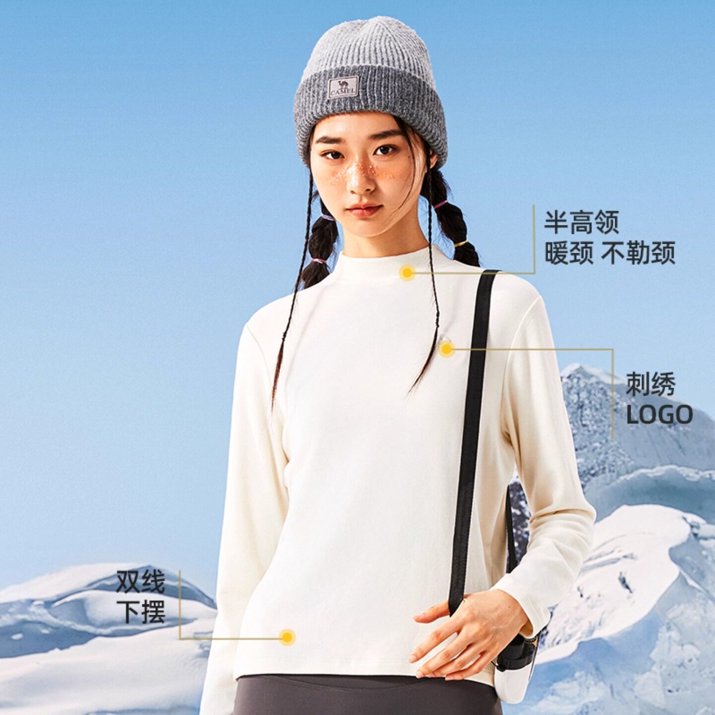 Camel骆驼女装发热T恤2025秋冬新款半高领德绒保暖叠穿打底长袖