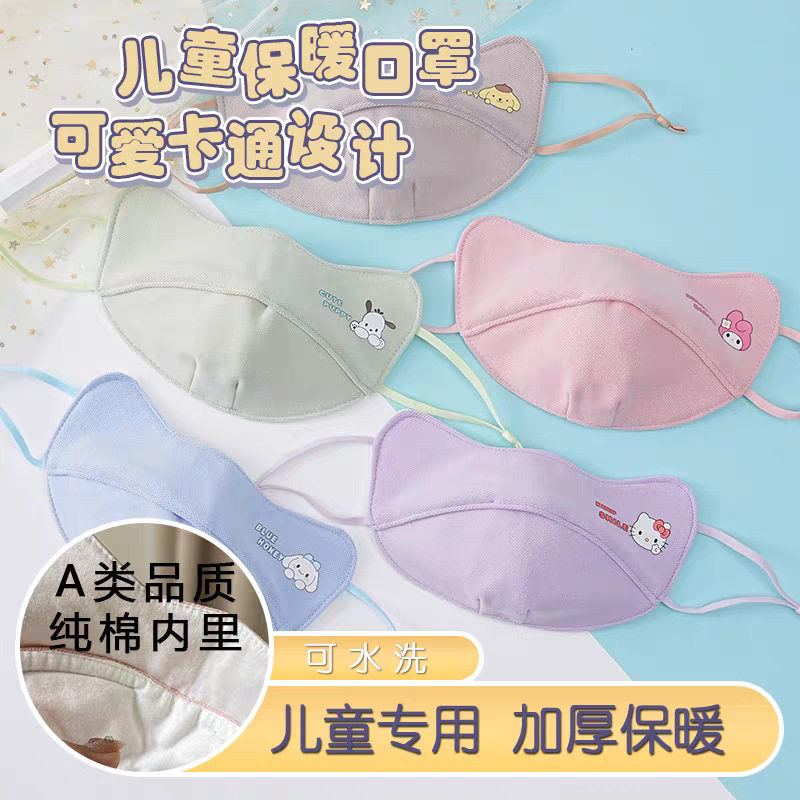 儿童保暖口罩秋冬季三丽鸥宝宝口罩纯棉可水洗防风防寒3到6到12岁
