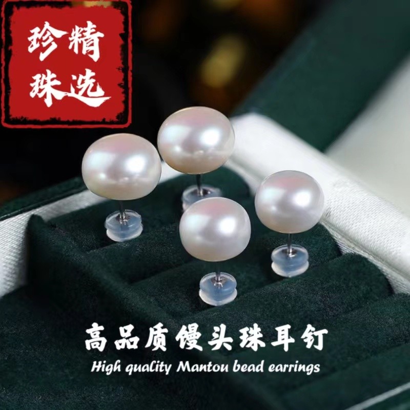 精选诸暨淡水馒头珍珠耳钉S925银针防过敏耳环精致小女人礼物珠宝