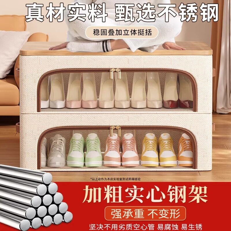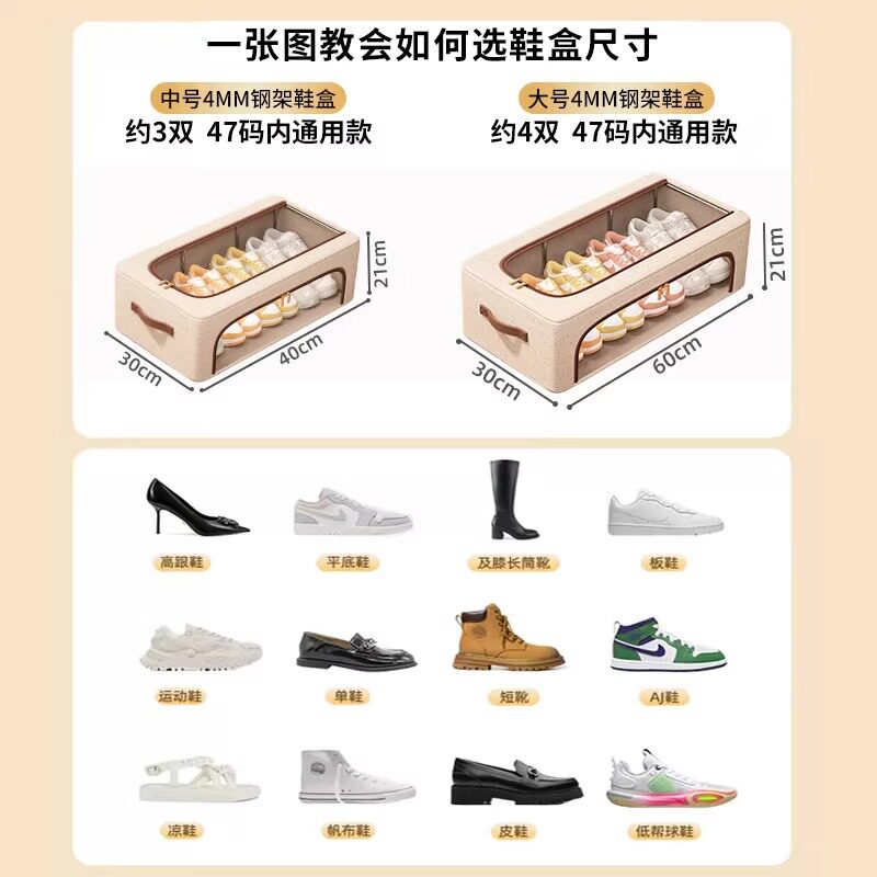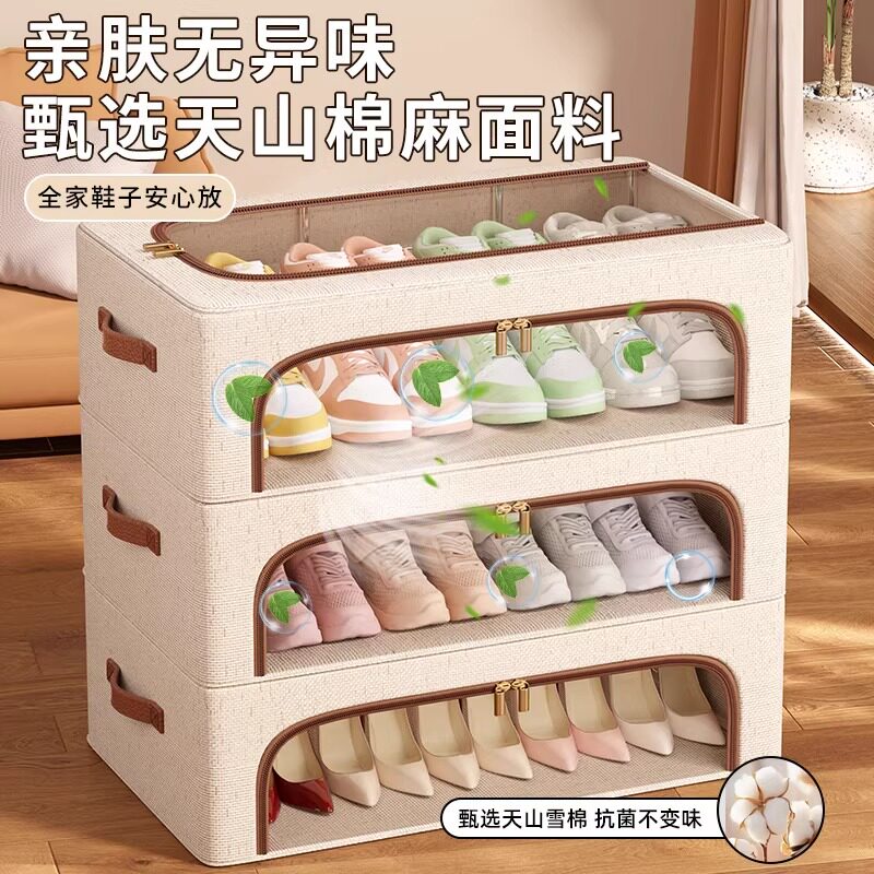 省空间鞋子收纳神器天山棉麻透明鞋盒简易鞋柜床底整理箱防尘鞋架