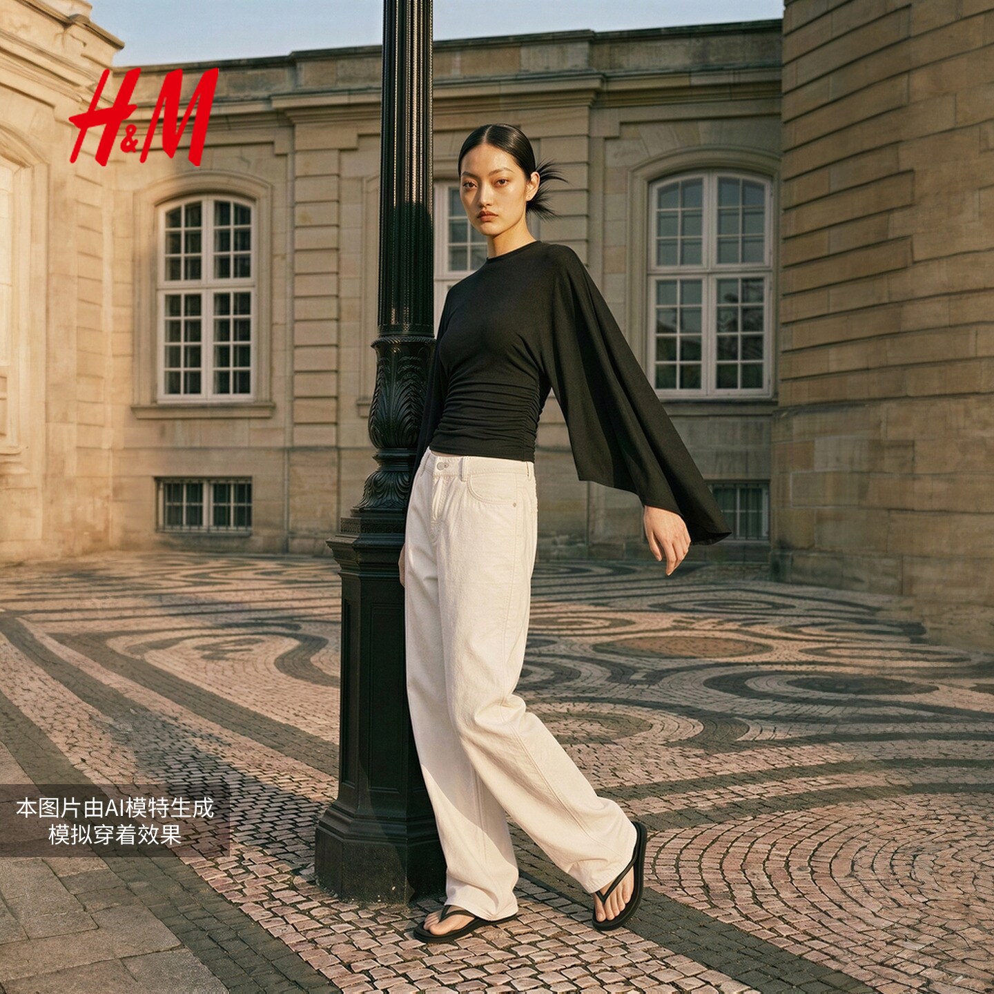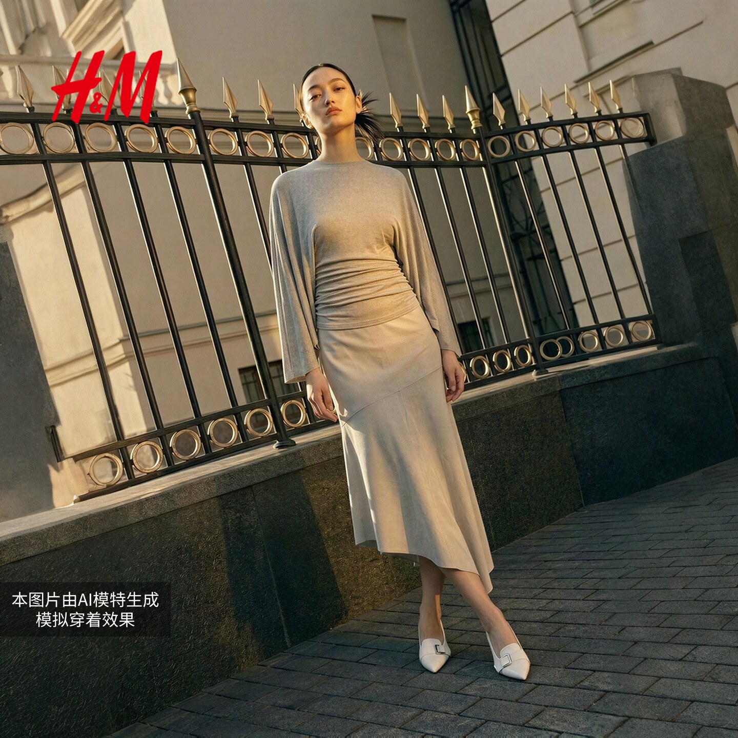 HM女装26年春夏新品遮肉欧美风显瘦蝙蝠袖针织上衣1000087