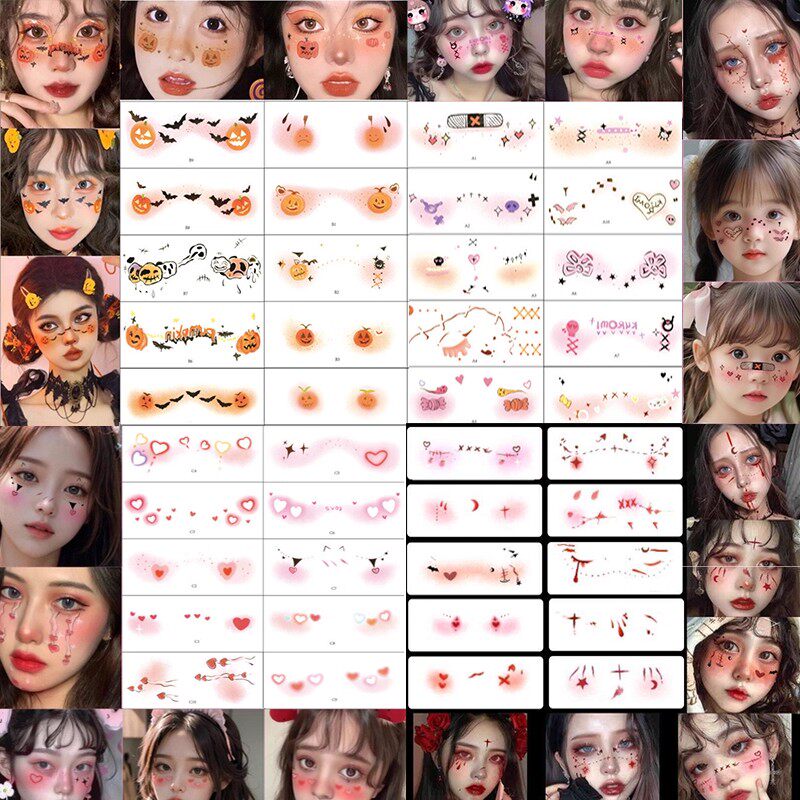 万圣节脸贴儿童纹身贴妆容男生南瓜女巫可洗式恶魔可爱装扮女童腮红水印脸部脸上圣诞节贴纸化妆装饰品道具