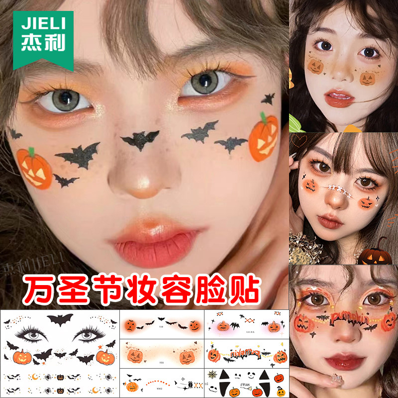 杰利万圣节儿童纹身贴卡通南瓜女巫圣诞节可爱装扮腮红水印贴妆容脸贴装饰贴纸蝙蝠小丑化妆贴纸活动表演道具