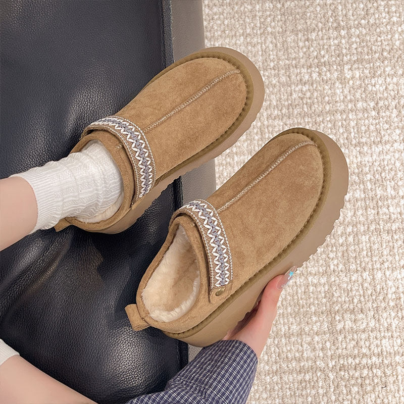 厚底加绒雪地靴包头毛毛半拖鞋女外穿2025新款冬季一脚蹬棉拖女鞋