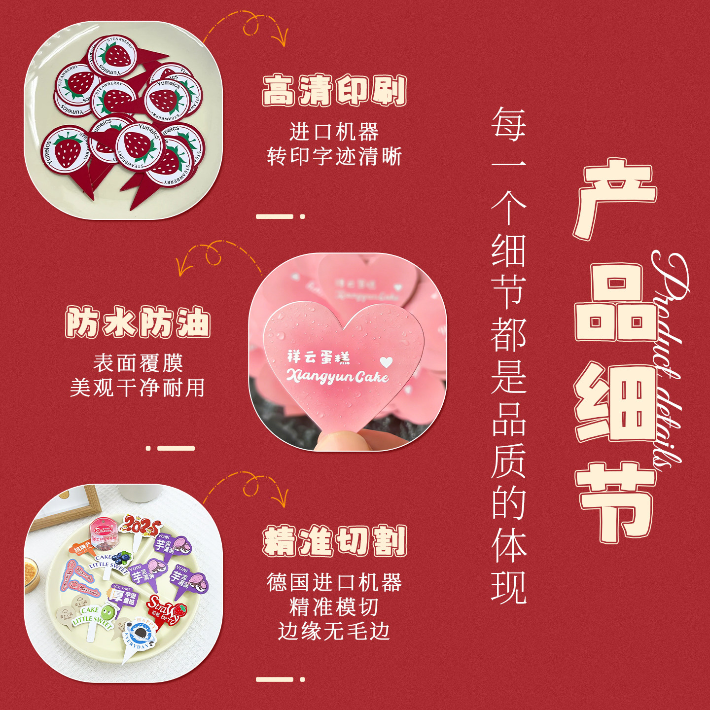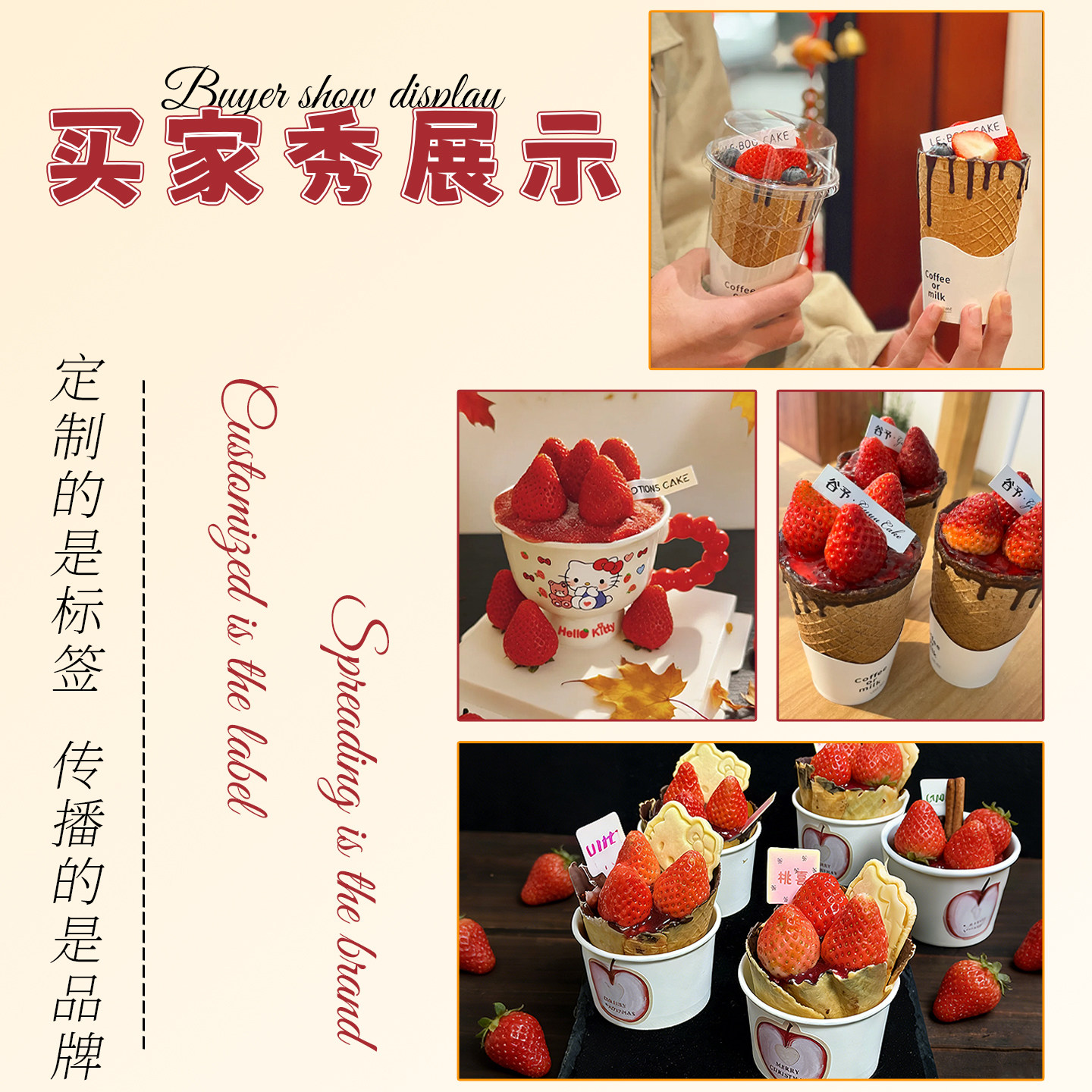 草莓燕麦杯logo插牌定制网红甜品装饰插件小卡片烘焙蛋糕创意LOGO标签设计提拉米苏烫金卡片印刷定做