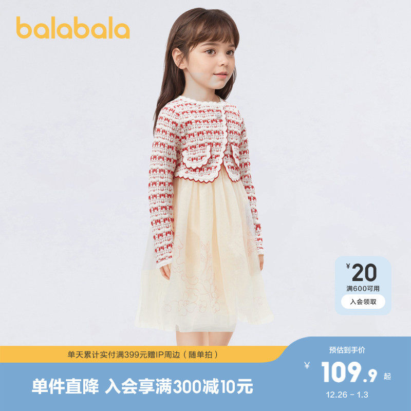 巴拉巴拉童装儿童连衣裙女童春秋装洋气裙子公主纱裙小童甜风宝宝