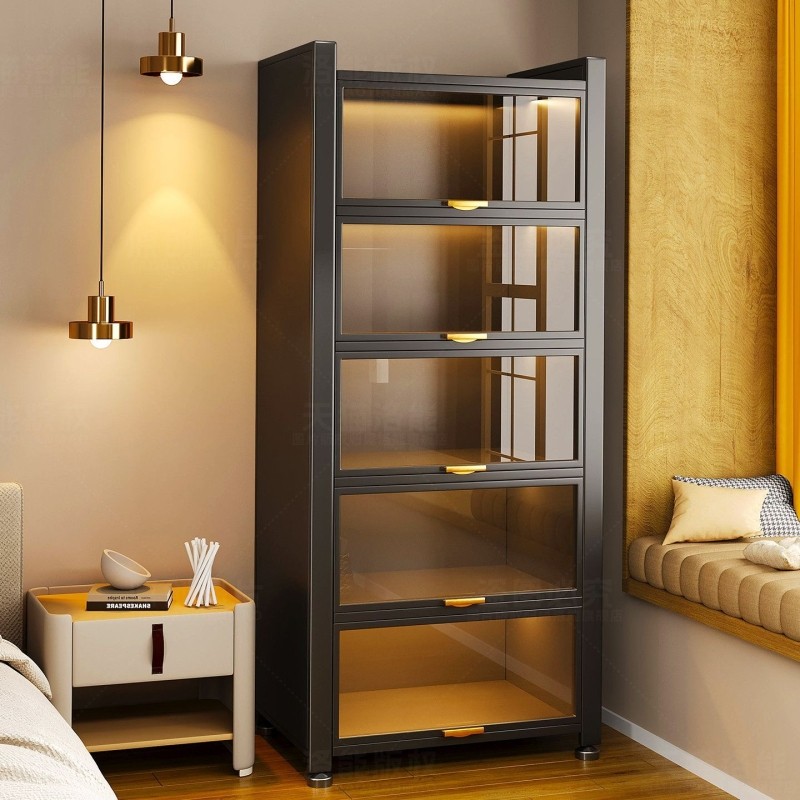 钢制书架带门玻璃书柜落地防尘铁皮手办展示柜家用储物柜收纳柜子