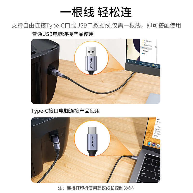 景赛 typec转方口打印机转接头通用安卓手机接解码器声卡midi转USB数据线吉他键盘电钢琴