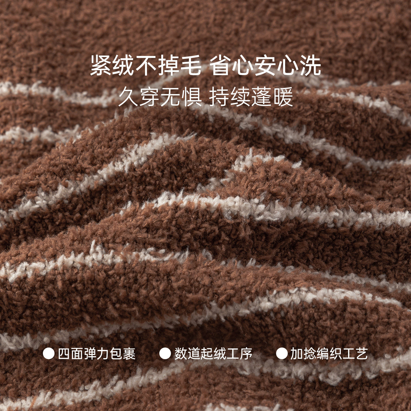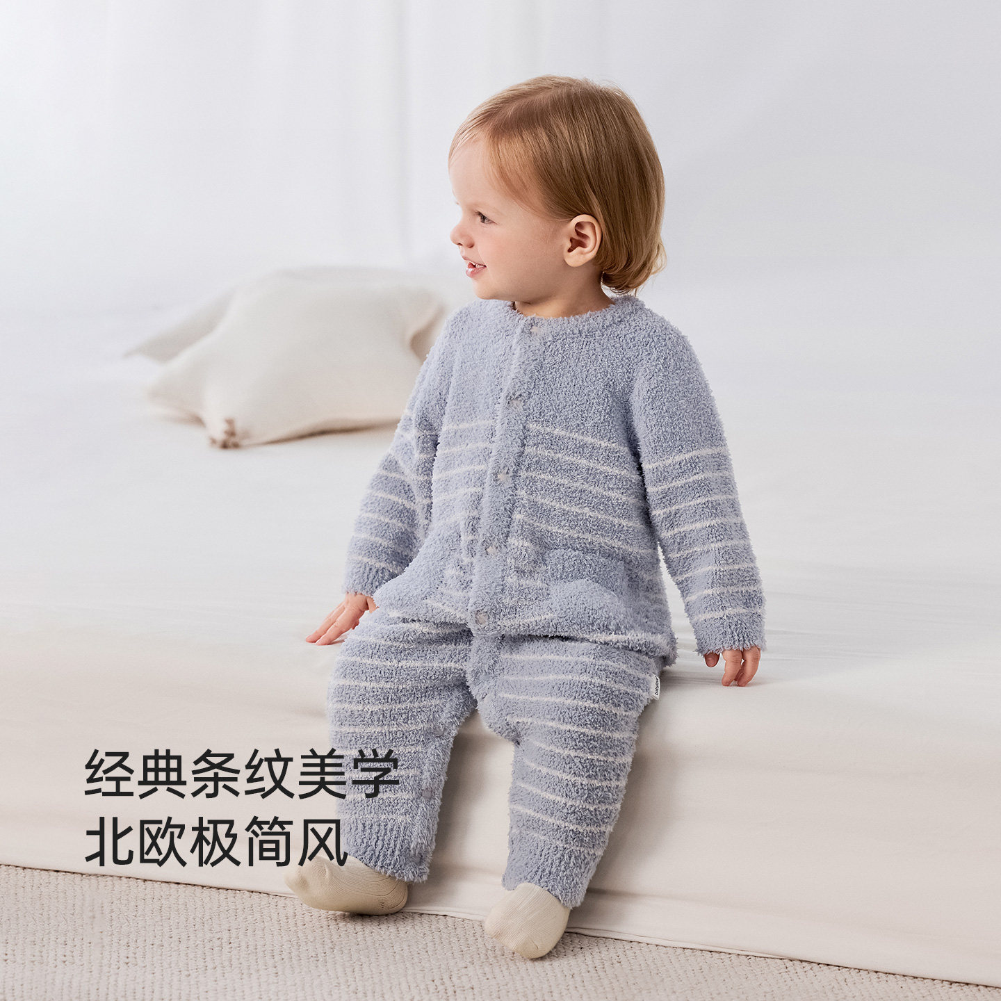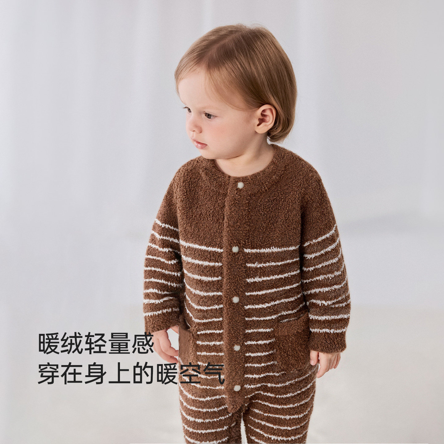 babylove婴儿半边绒连体衣冬季保暖哈衣爬服男女宝宝毛绒条纹睡衣