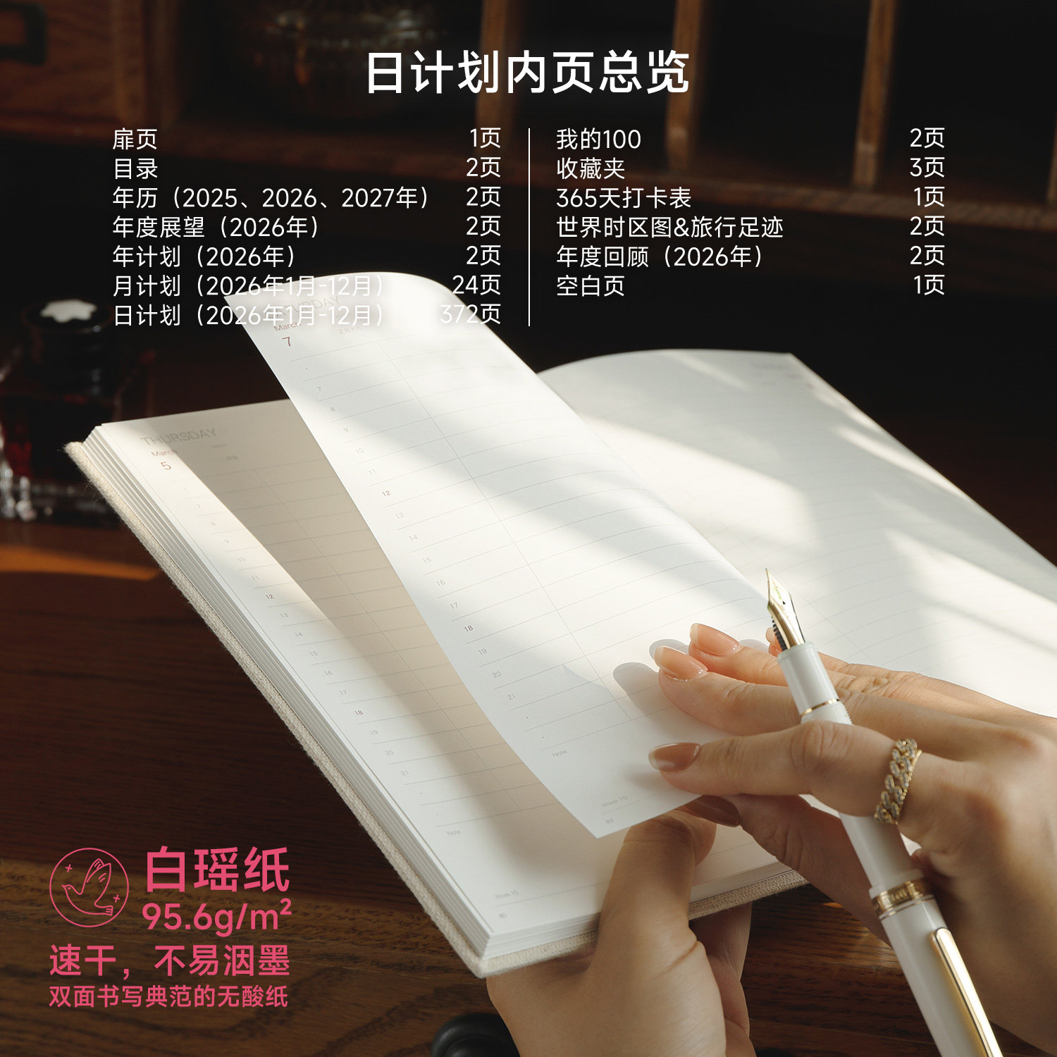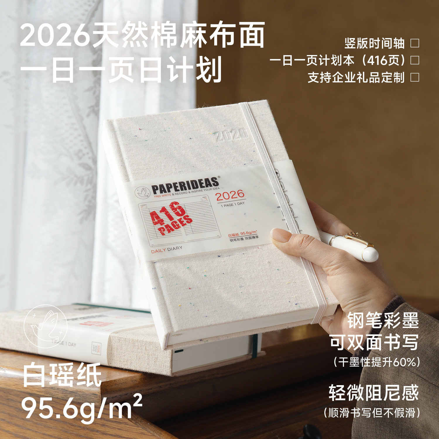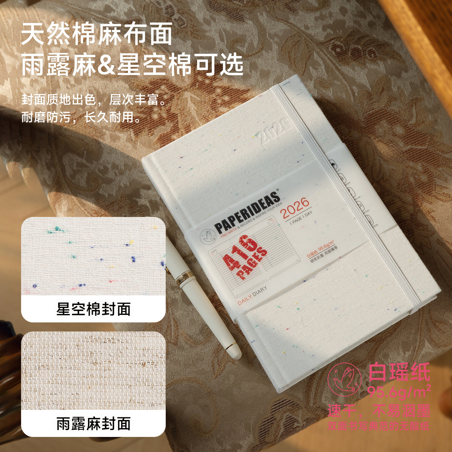 麻布2026速干白瑶纸一日一页简洁高效排版
