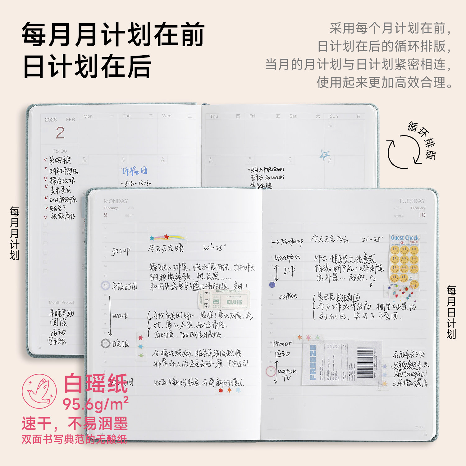 2026年日程本新款计划表365天每日时间管理效率手册大学生日历自律打卡本高颜值记事本文艺精致手账笔记本子