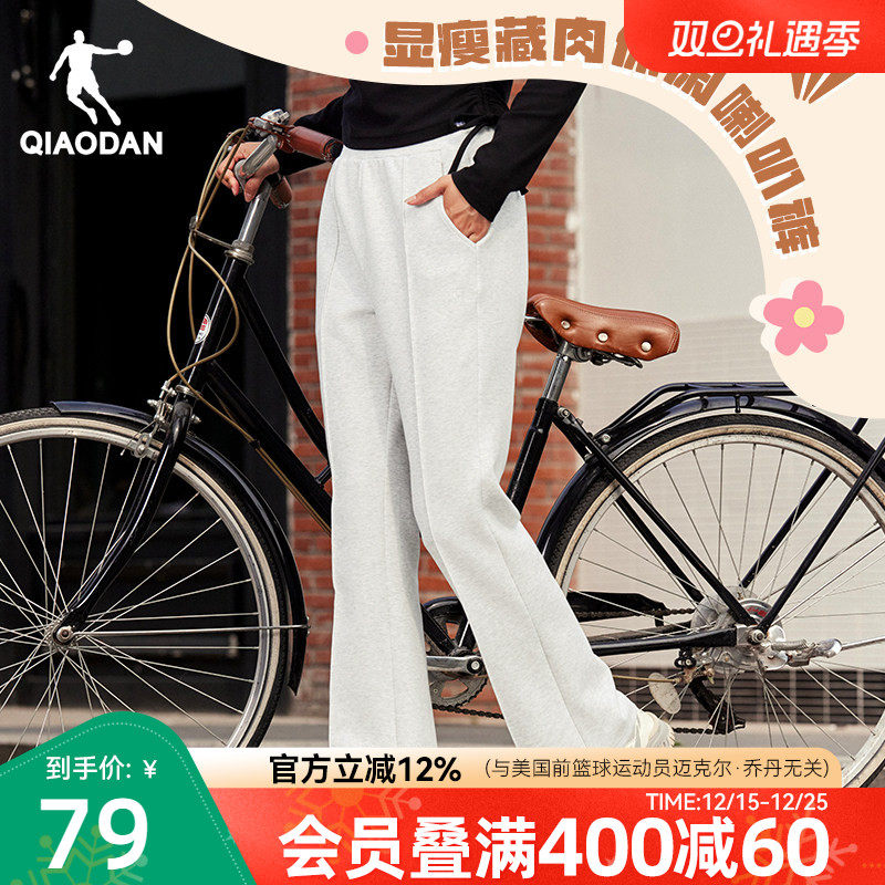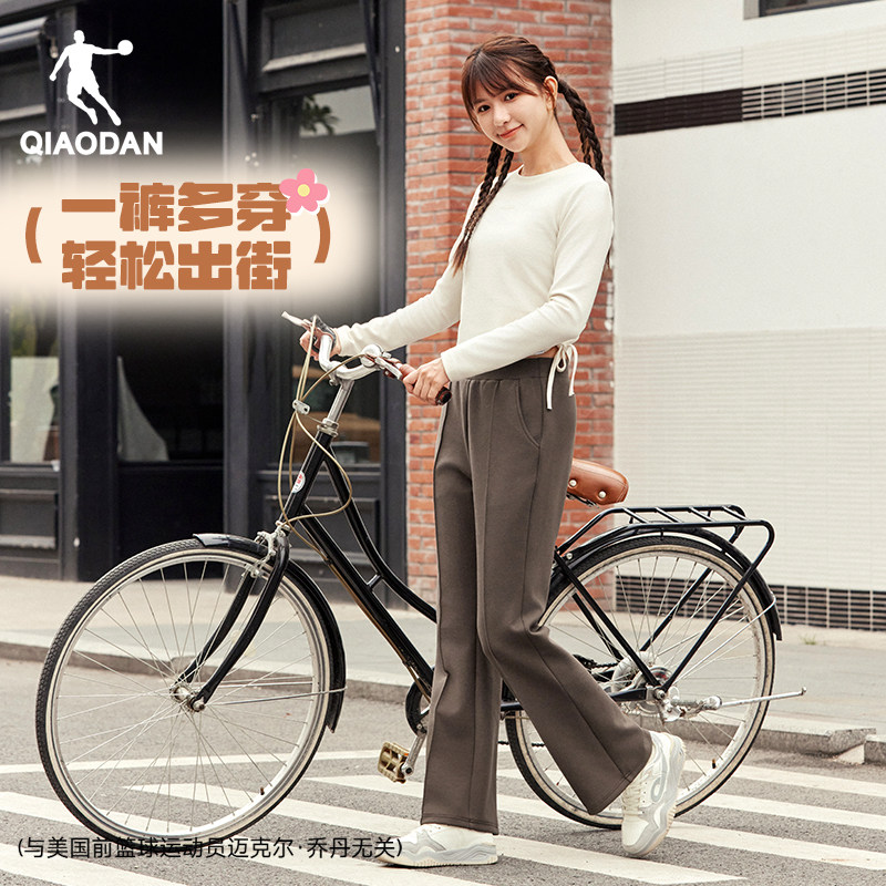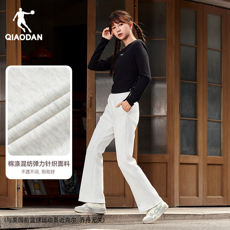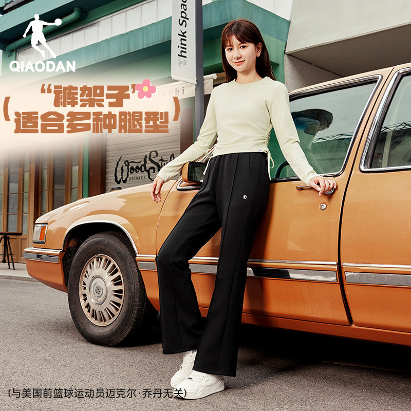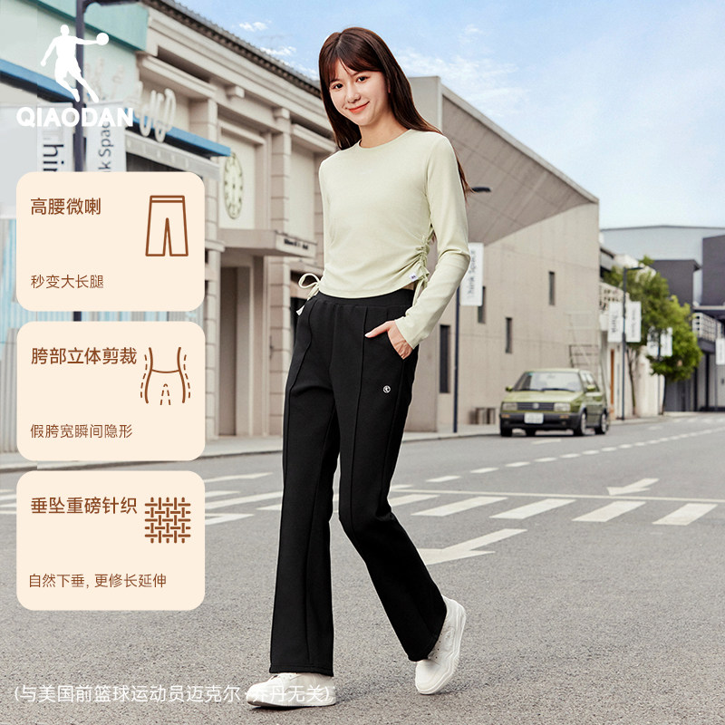 乔丹微喇休闲针织长裤女2025冬季新款高腰显瘦百搭舒适裤子潮流女