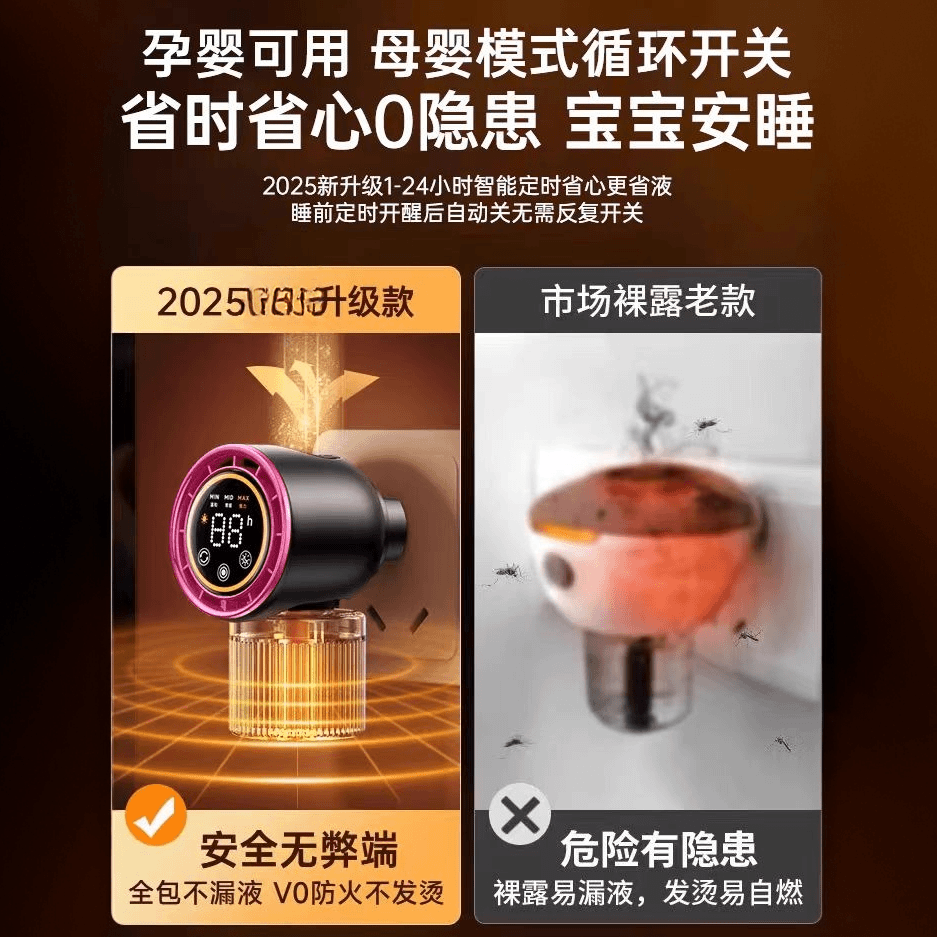 【定时驱蚊神器可换挡】数显驱蚊器三档调节家用防蚊虫儿童无味驱蚊