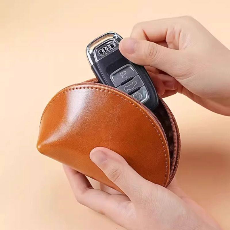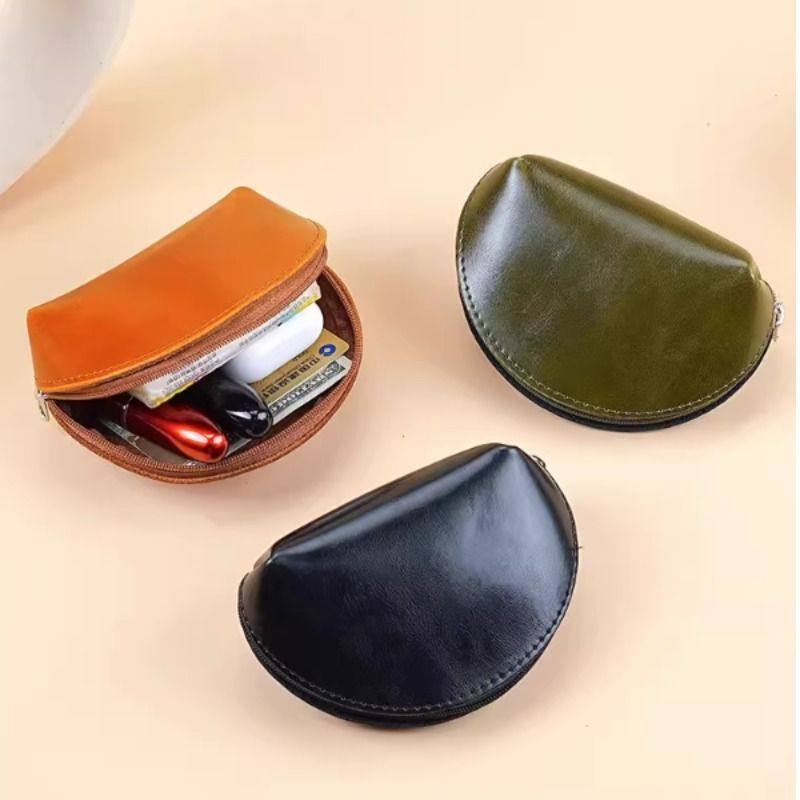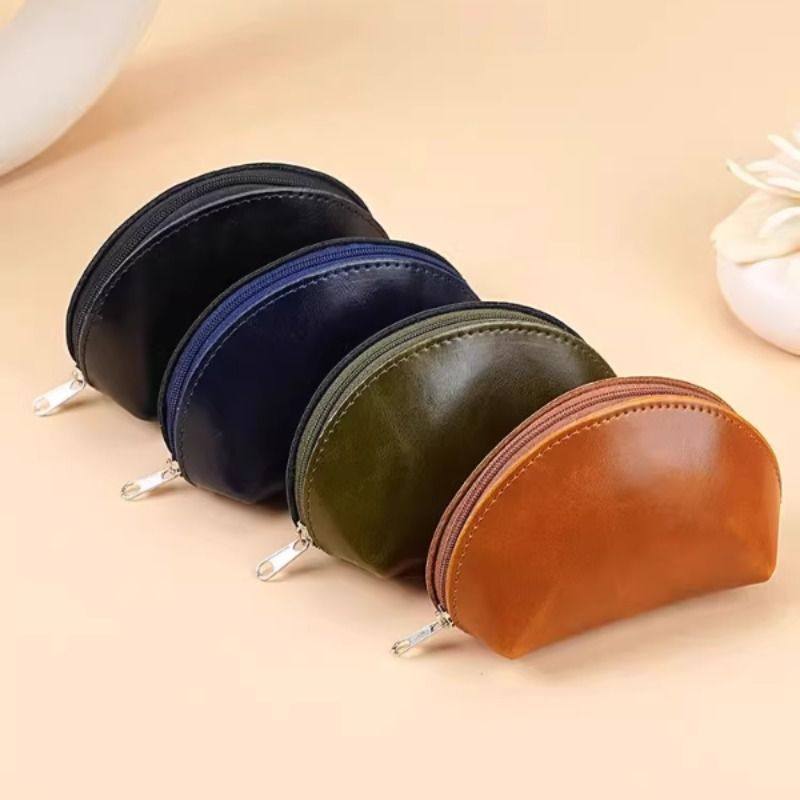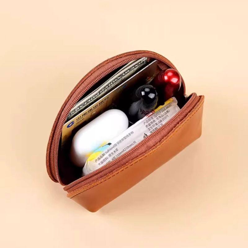 复古油蜡皮小钱包女款简约迷你贝壳形实用耳机硬币口红钥匙收纳包