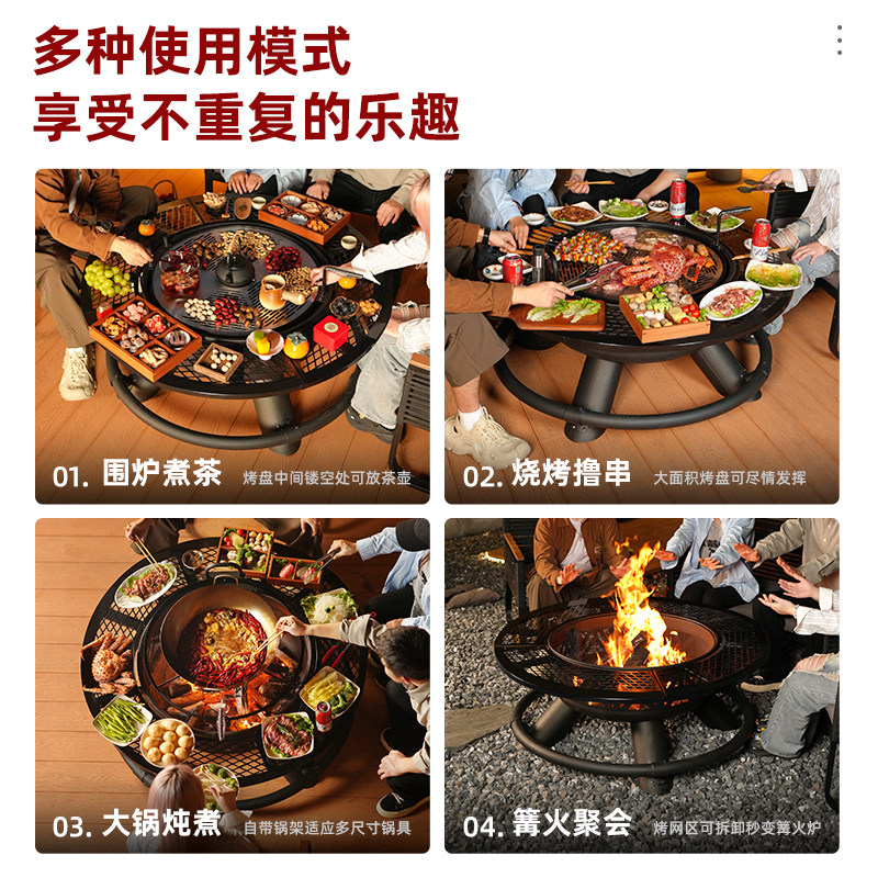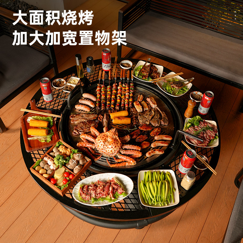 洛摩鼎烧烤炉家用庭院围炉煮茶烧烤架户外柴火灶篝火盆烤火炉桌