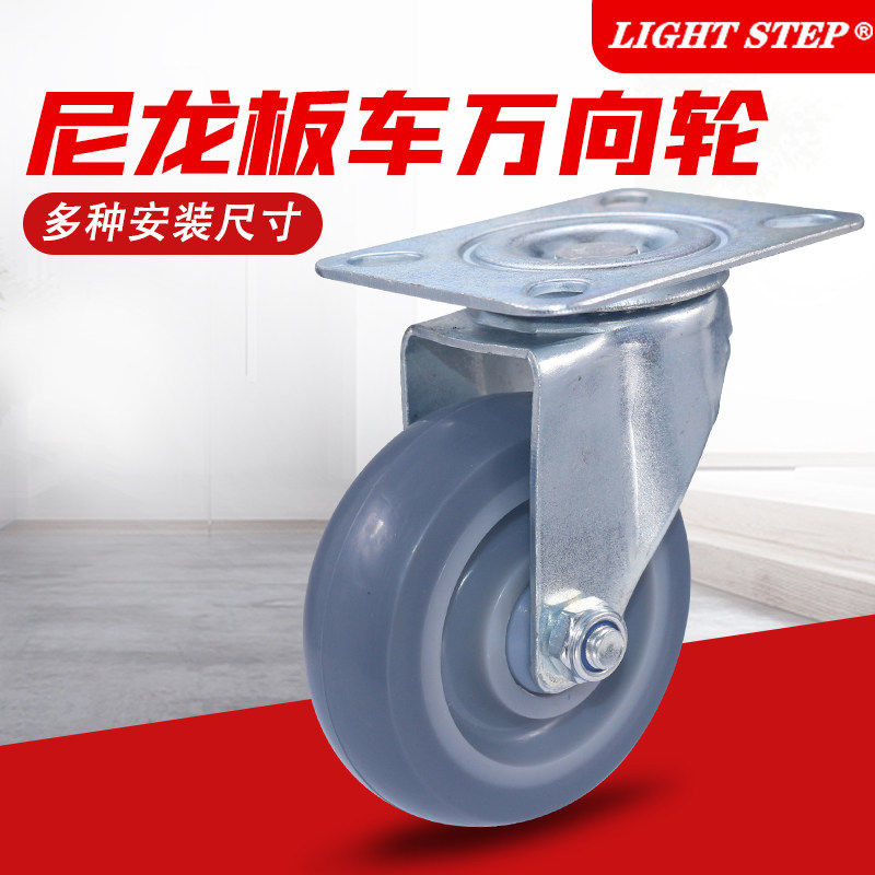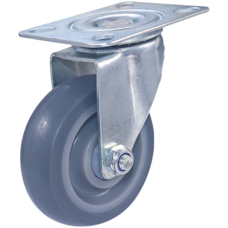 4寸5寸橡胶静音万向脚轮耐磨平板车滚轮螺钉安装推车承重孔距车轮