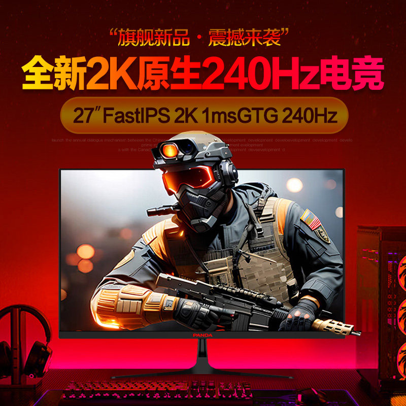 熊猫27英寸2K 240Hz显示器FastIPS电竞4K高清144Hz游戏电脑屏幕24