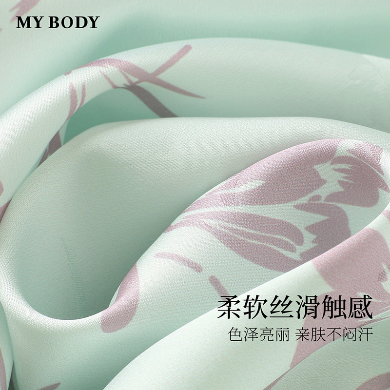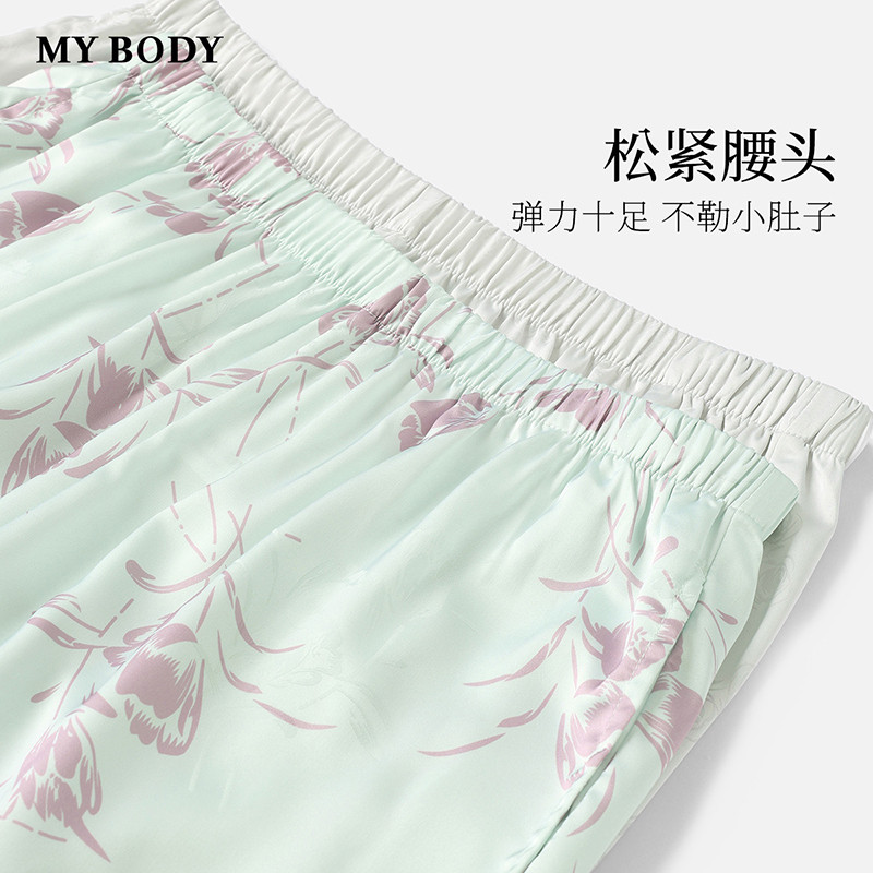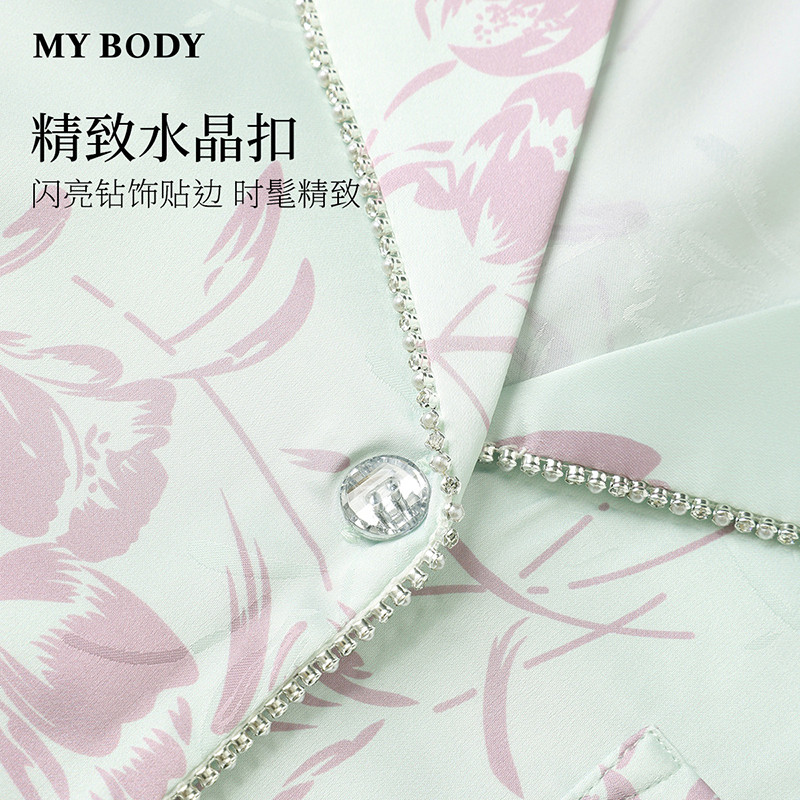 商场同款MYBODY新款睡衣经典法式翻领钻饰贴边印花可外穿家居服女