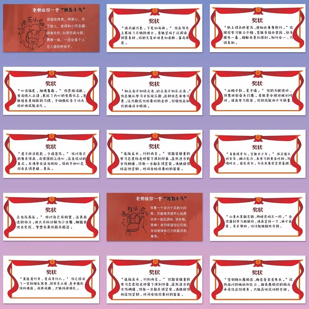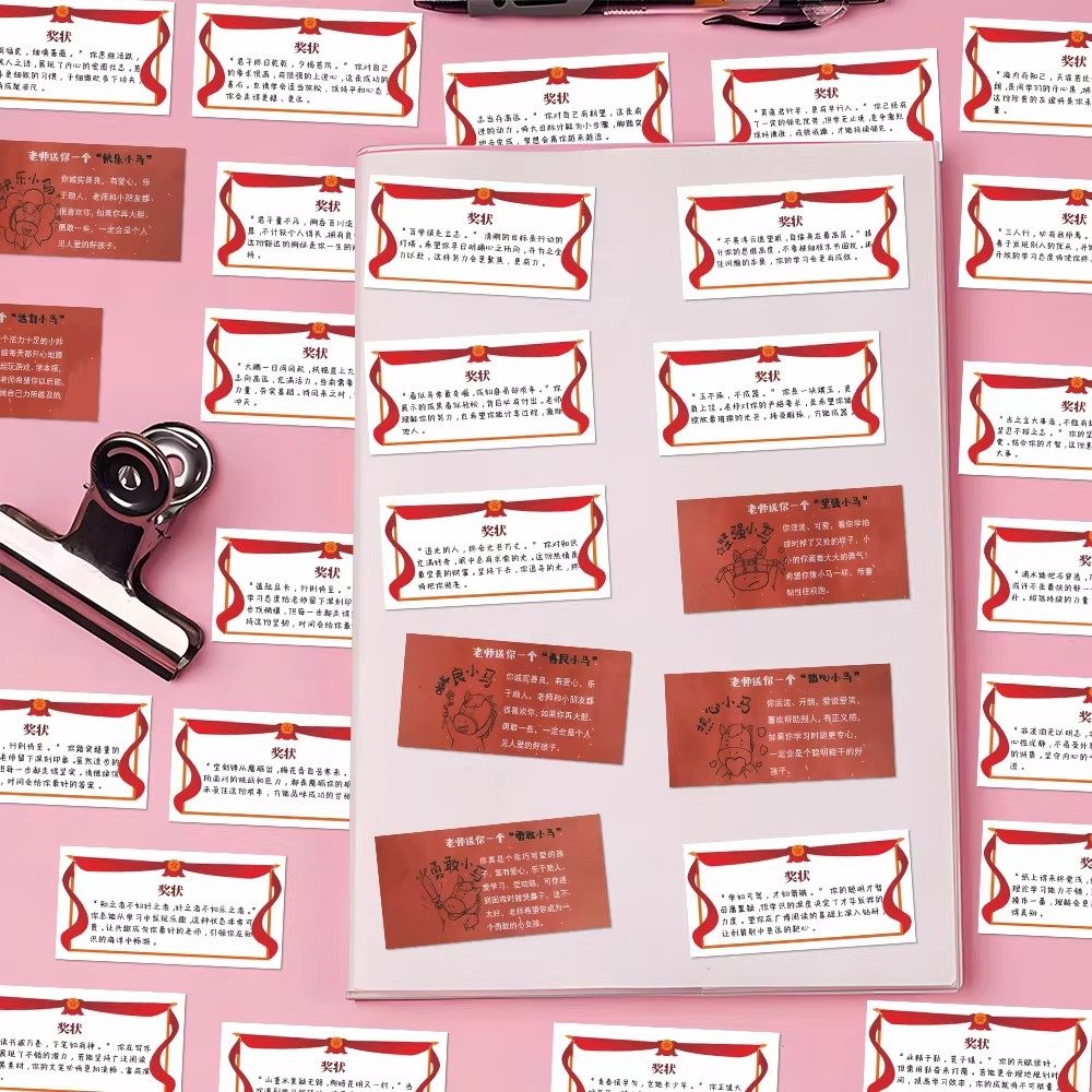 144张小奖状贴纸新款热门教师期末鼓励学生治愈系贴画装饰桌面diy
