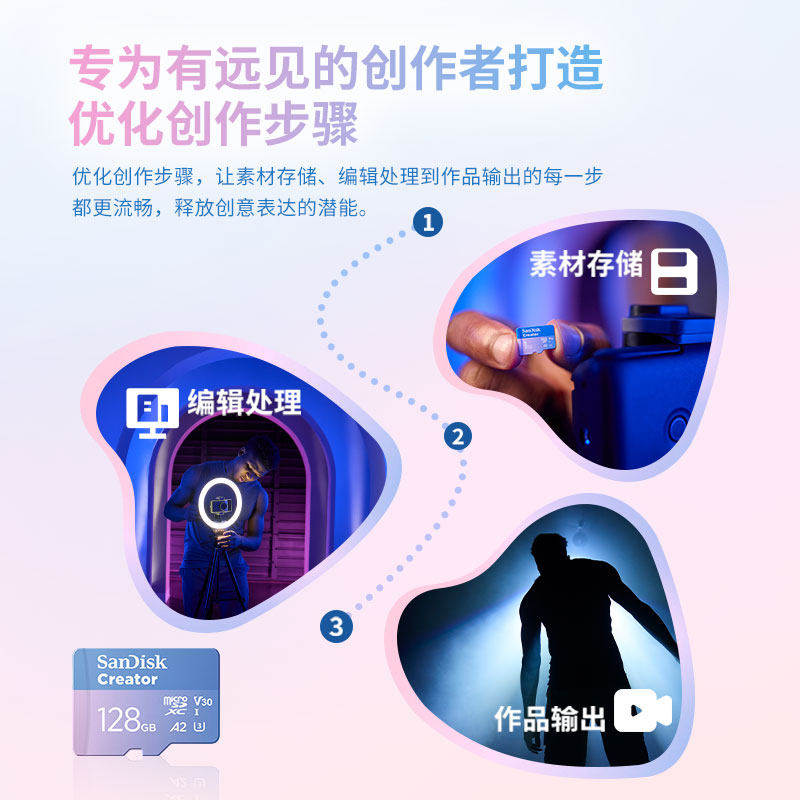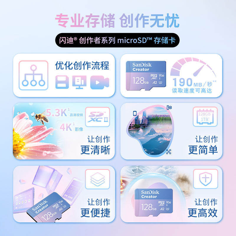 闪迪创作者tf卡128g高速大疆pocket3影石储存卡无人机内存卡专用