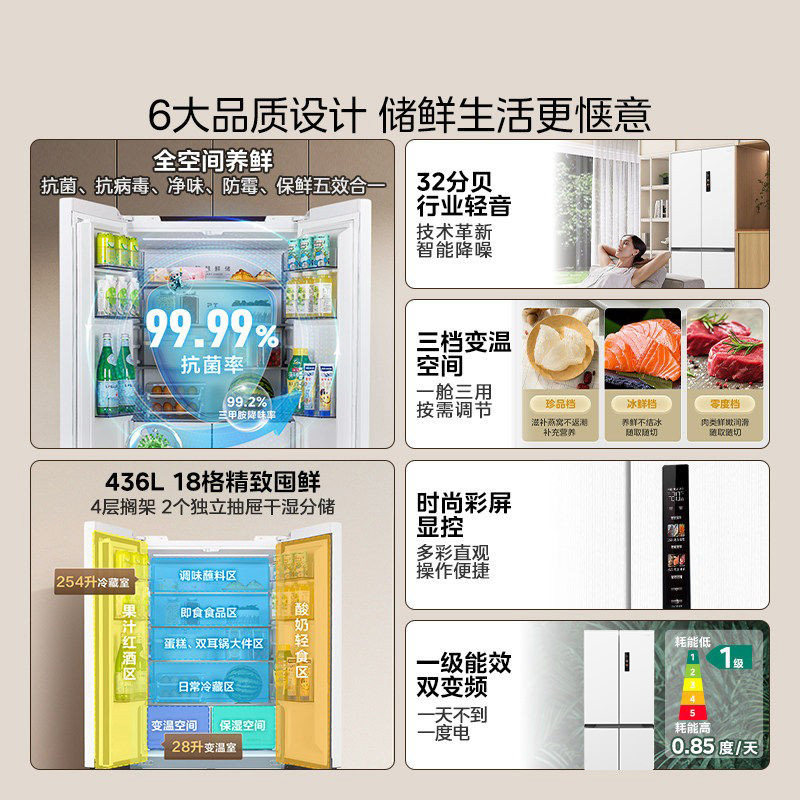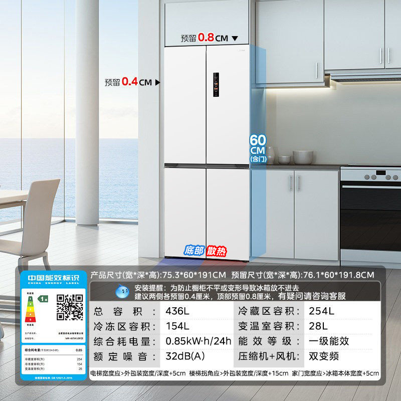 美的华凌神机547双系统超薄零嵌入式十字双开四门家用一级冰箱