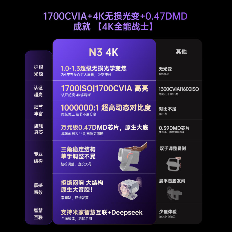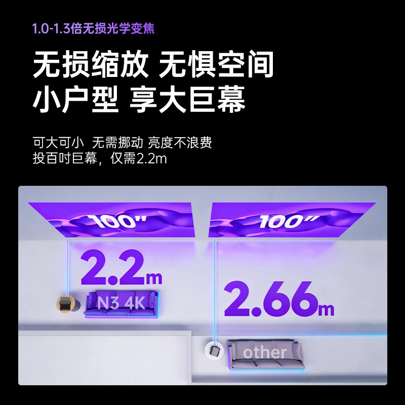 【政府补贴 全国立减20%】坚果N3投影仪4K光学变焦三色激光家用超高清可连手机卧室投屏家庭客厅高亮投影机