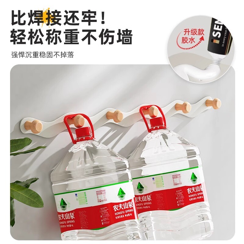 透明连排挂钩六连挂强力粘胶不掉落收纳壁挂无痕免打孔门后粘钩