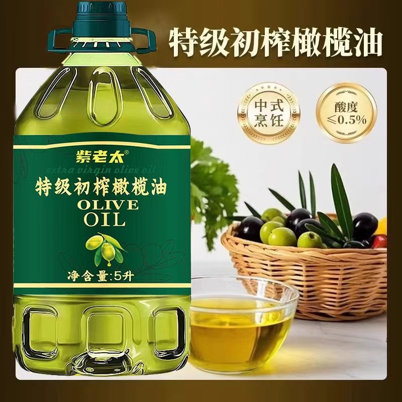 纯正橄榄油5L装特级初榨橄榄油无添加炒菜低脂健身食用油官方正品