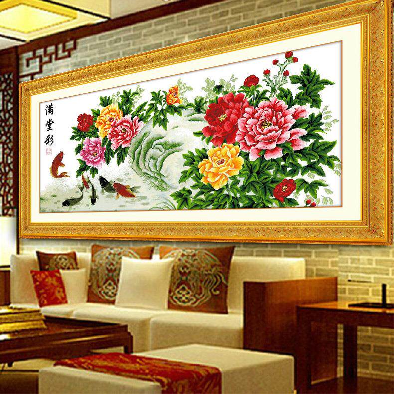 青飞精准印布满堂彩十字绣花开富贵牡丹争艳锦鲤献福客厅挂画