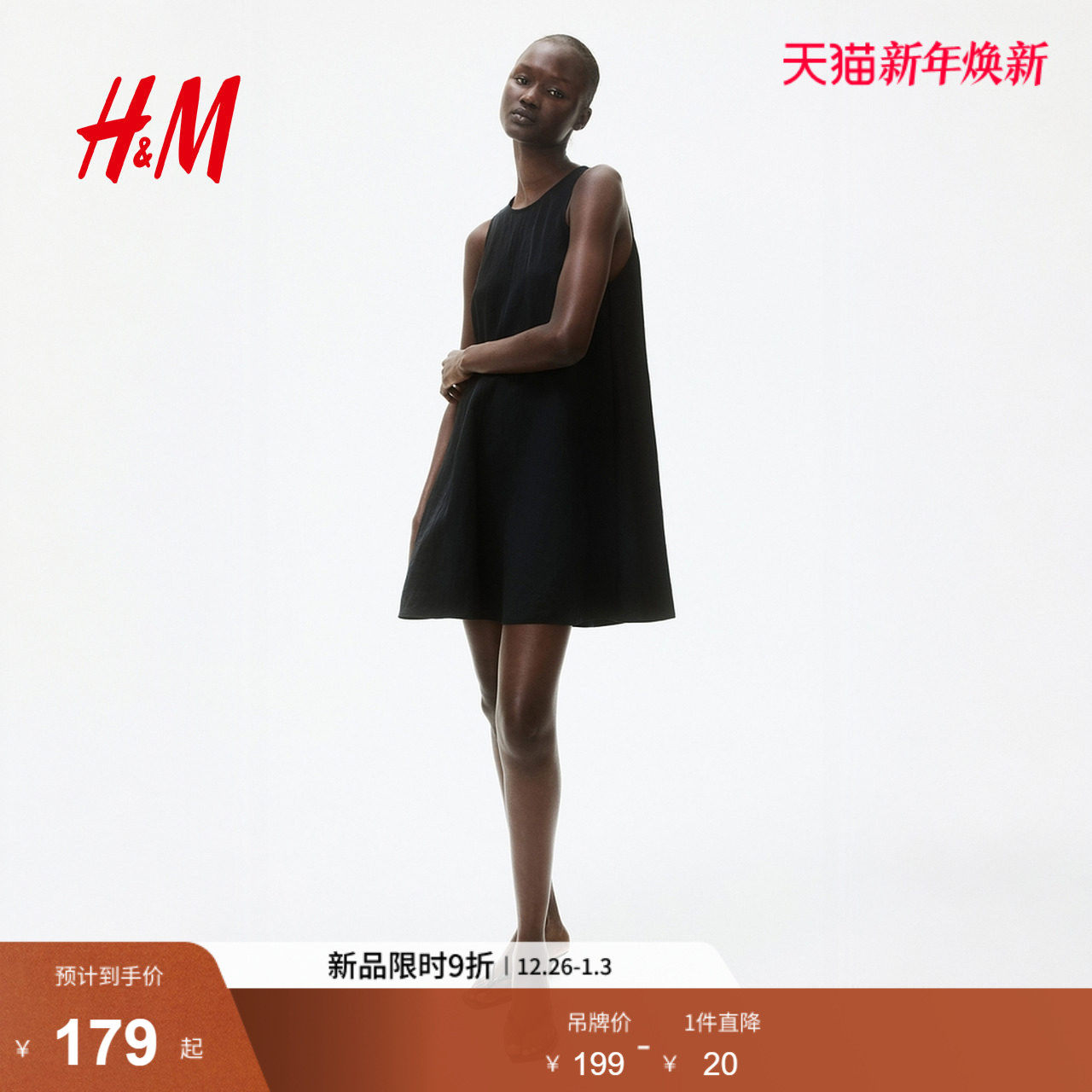 HM女装连衣裙2025冬季新款宽松法式通勤直筒a字版型连衣裙1292353