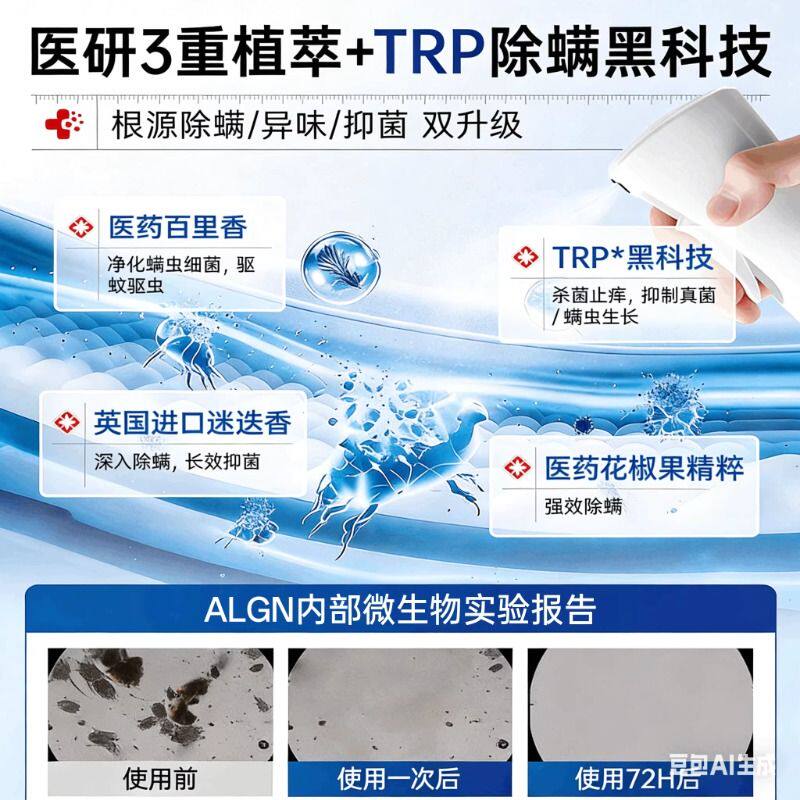 除螨喷雾母婴可用家用宠物杀菌空气芳香剂床上被子去螨虫神器国货