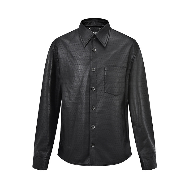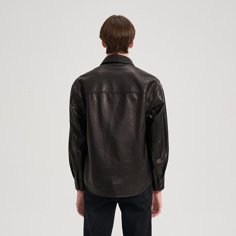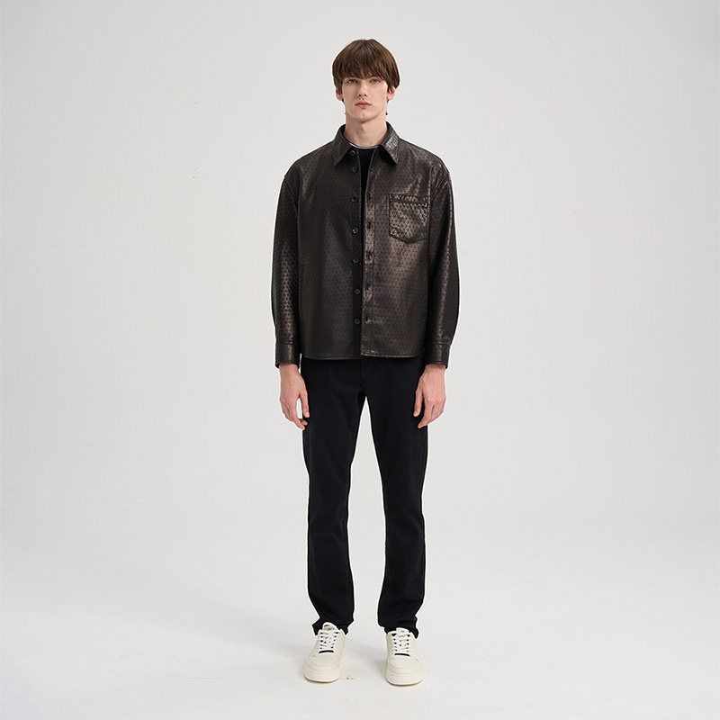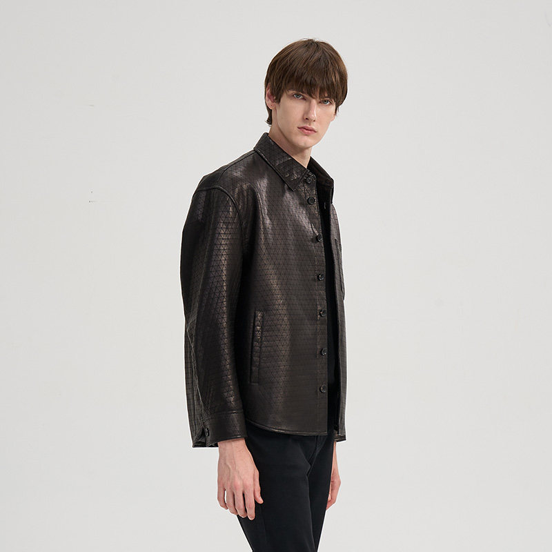 RARE威雅男装2025秋冬新款衬衫款绵羊皮黑色夹克外套男士真皮皮衣