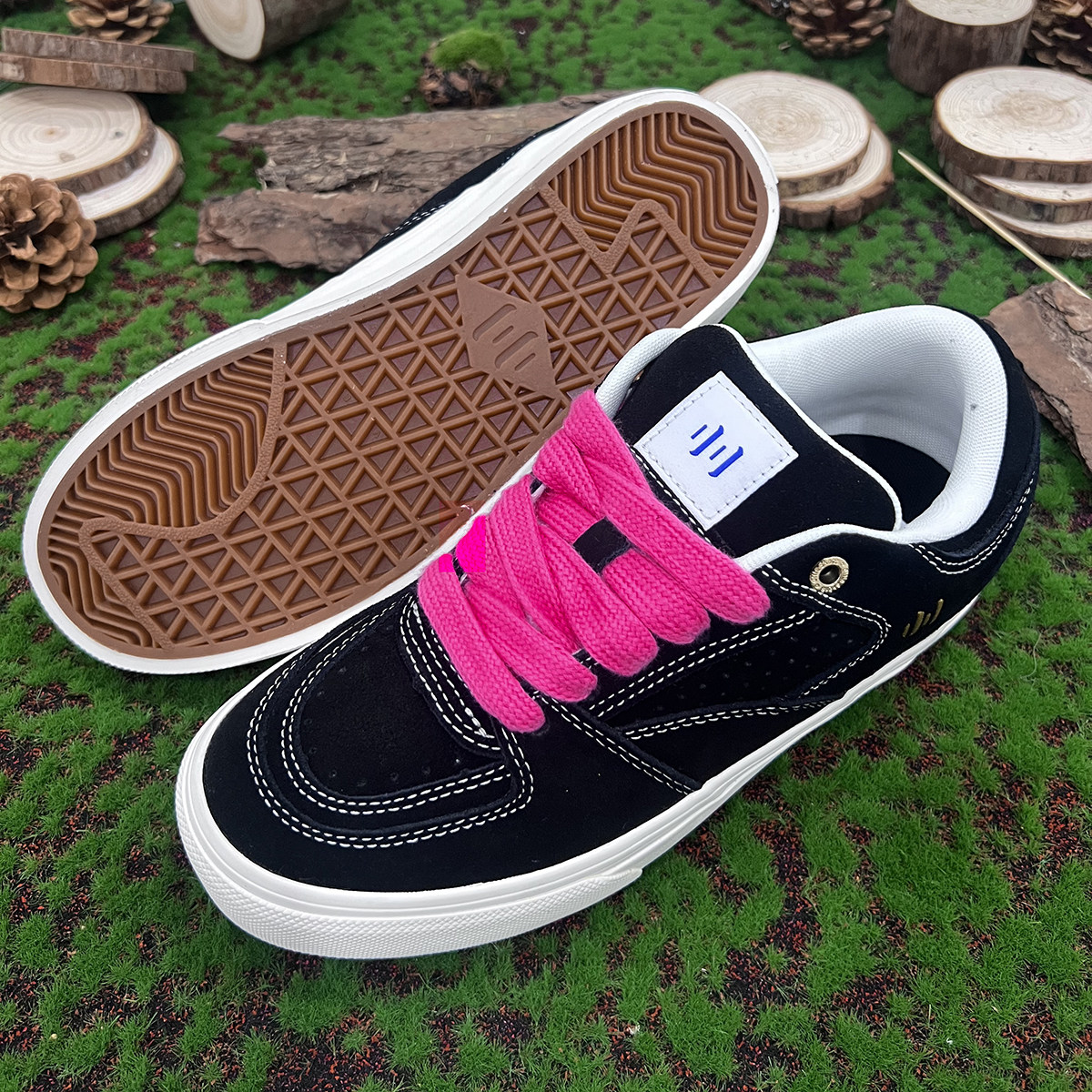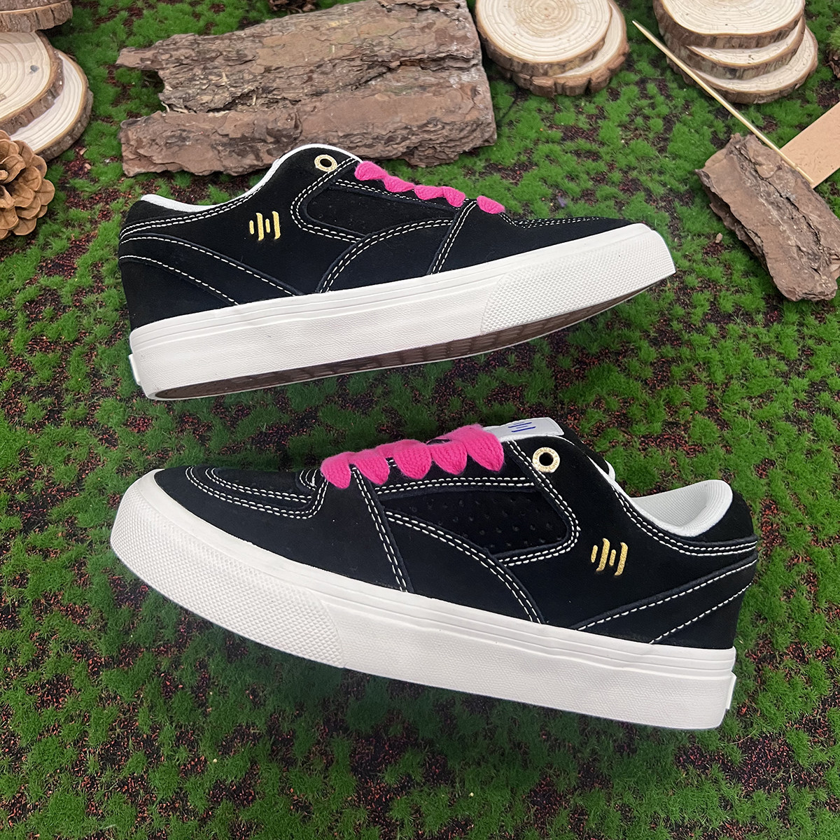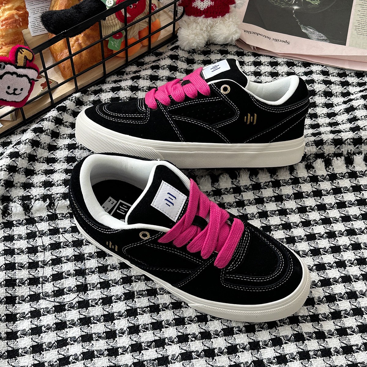 黑色明暗翻毛皮复古滑板鞋
