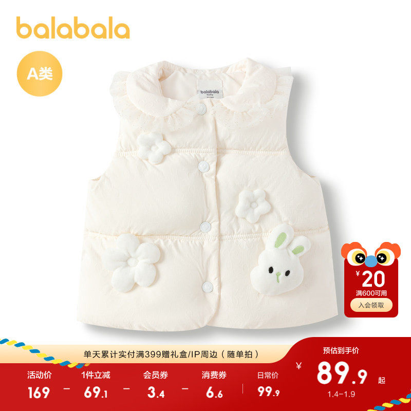 巴拉巴拉宝宝马甲外穿婴儿夹棉背心冬装加厚保暖萌趣可爱简约气质