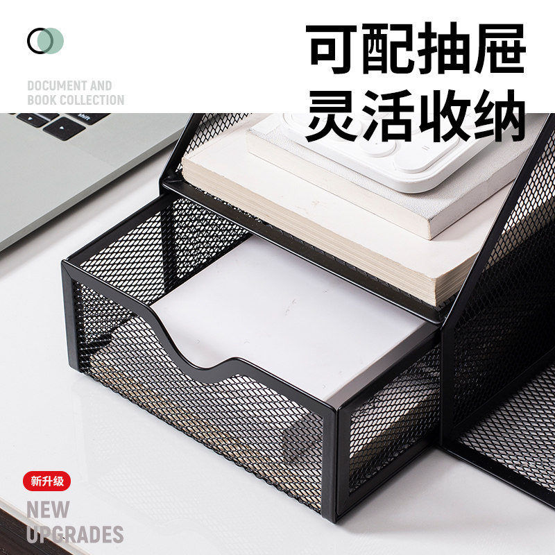 金属可抽拉文件盘文件架桌面多层办公室a4金属网纹收纳架分层文件筐立体整理资料文件档案书架加厚铁艺收纳盒