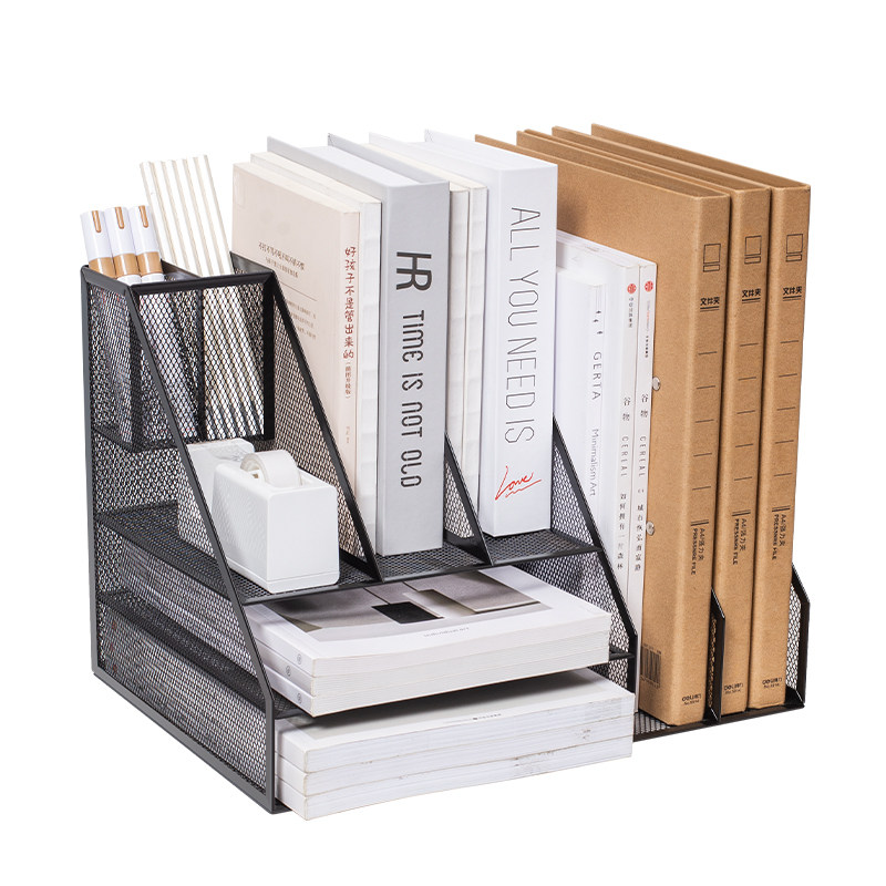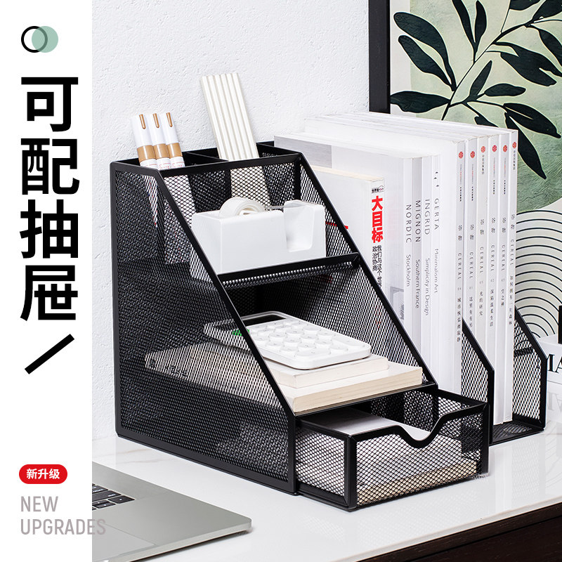 办公桌收纳置物架文件收纳盒办公用品文件架桌面书架多层大容量文件框文件夹A4纸资料档案整理架金属书立架