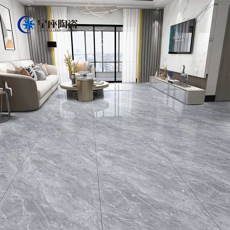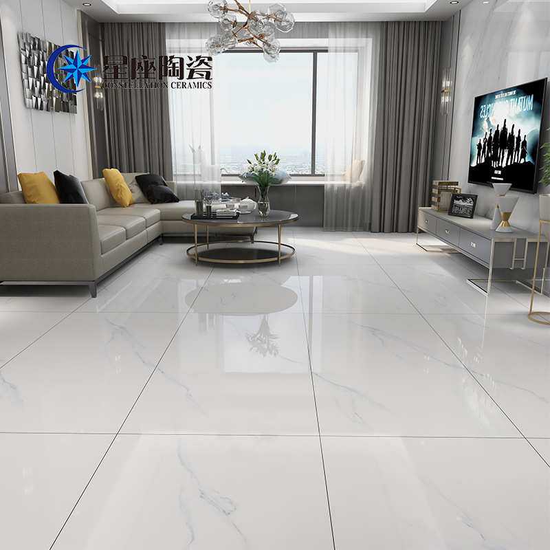 广东佛山白色灰色客厅通体大理石瓷砖750x1500亮光大板地砖墙砖