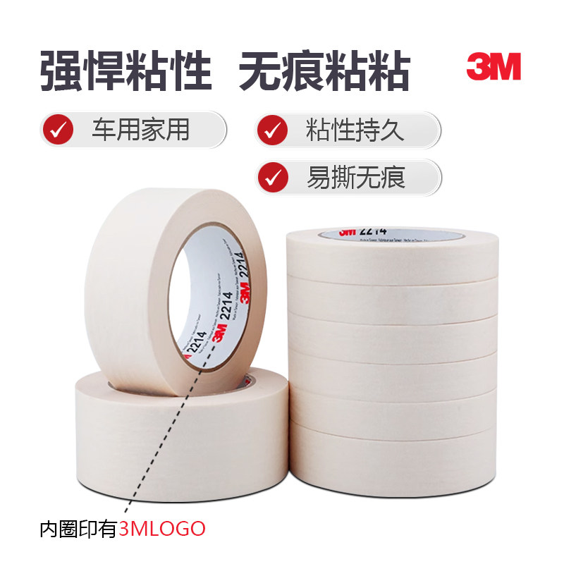 正品3M2214耐高温美纹纸胶带汽车喷漆美容遮蔽无痕胶带工业用胶带