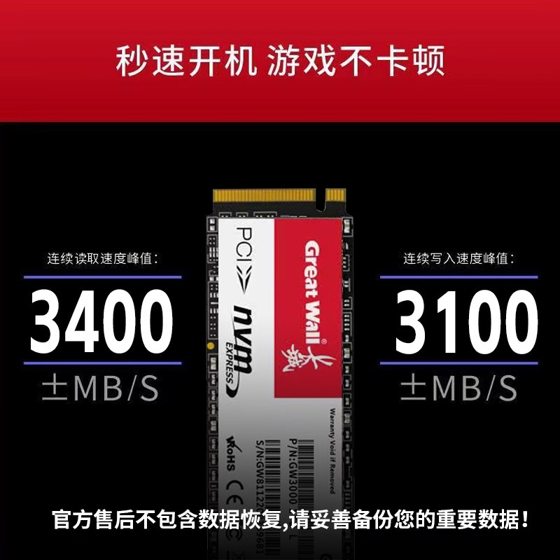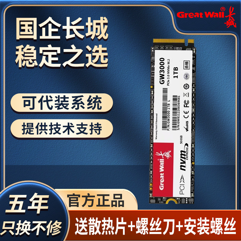 长城m2固态1TB硬盘512G高速NVME台式机2TBSSD笔记本PCIE3.0一体机