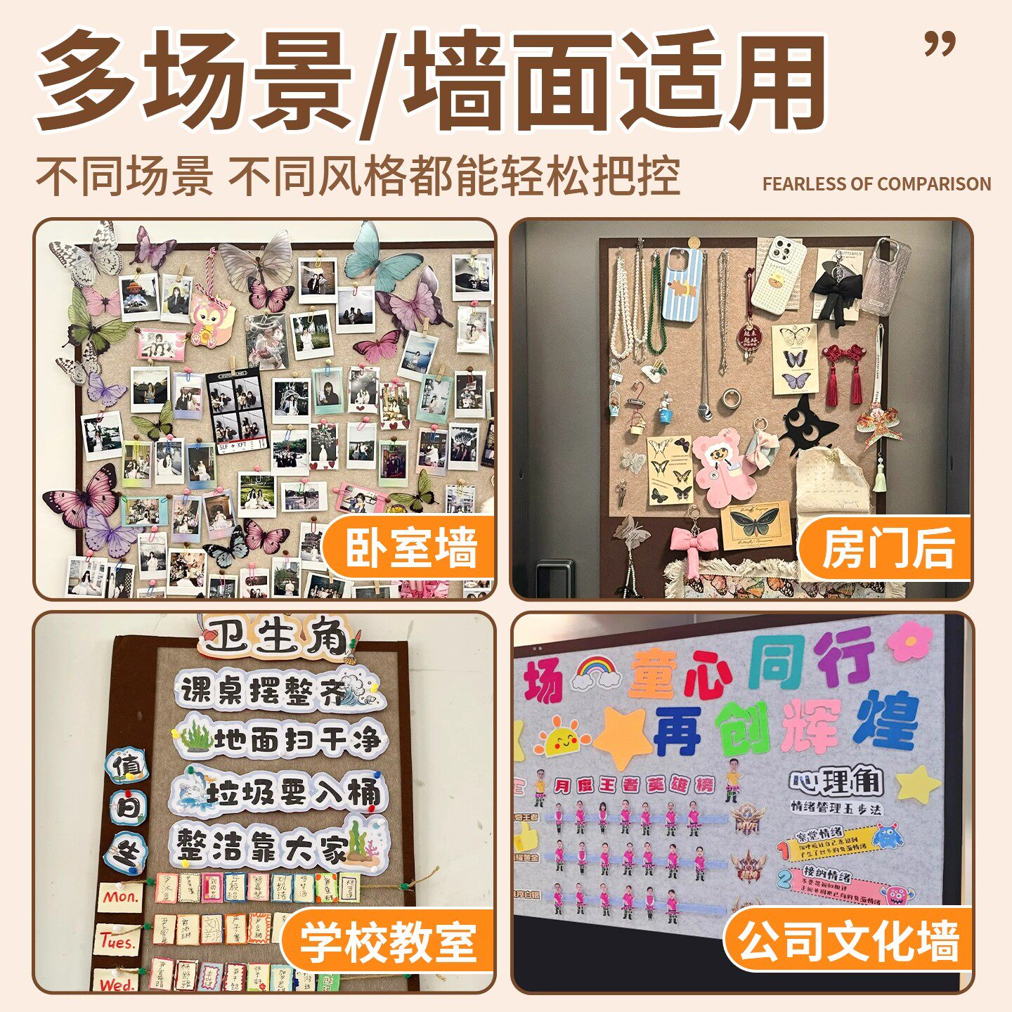 软木板彩色毛毡板照片墙幼儿园作品展留言板背景墙墙贴公告栏展示