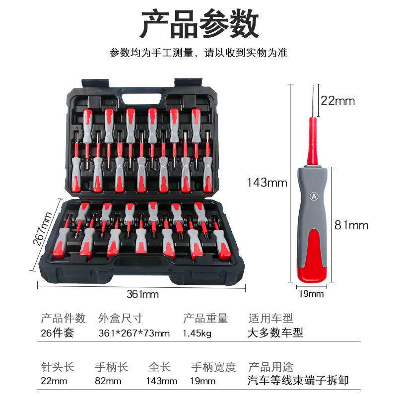 26件汽车端子拆卸退针器线束插头解锁工具电路拔取出钥匙线路拆装