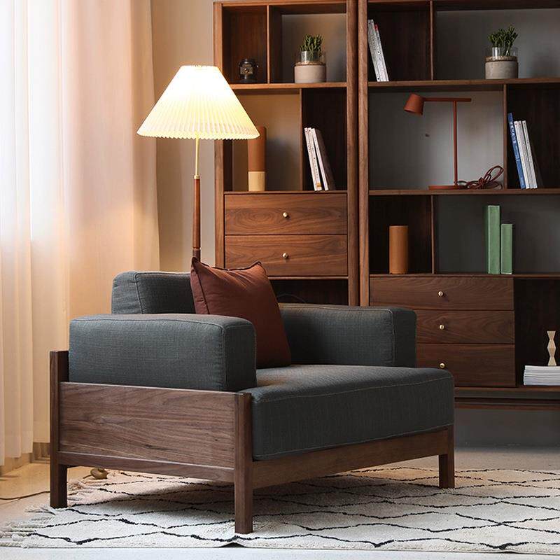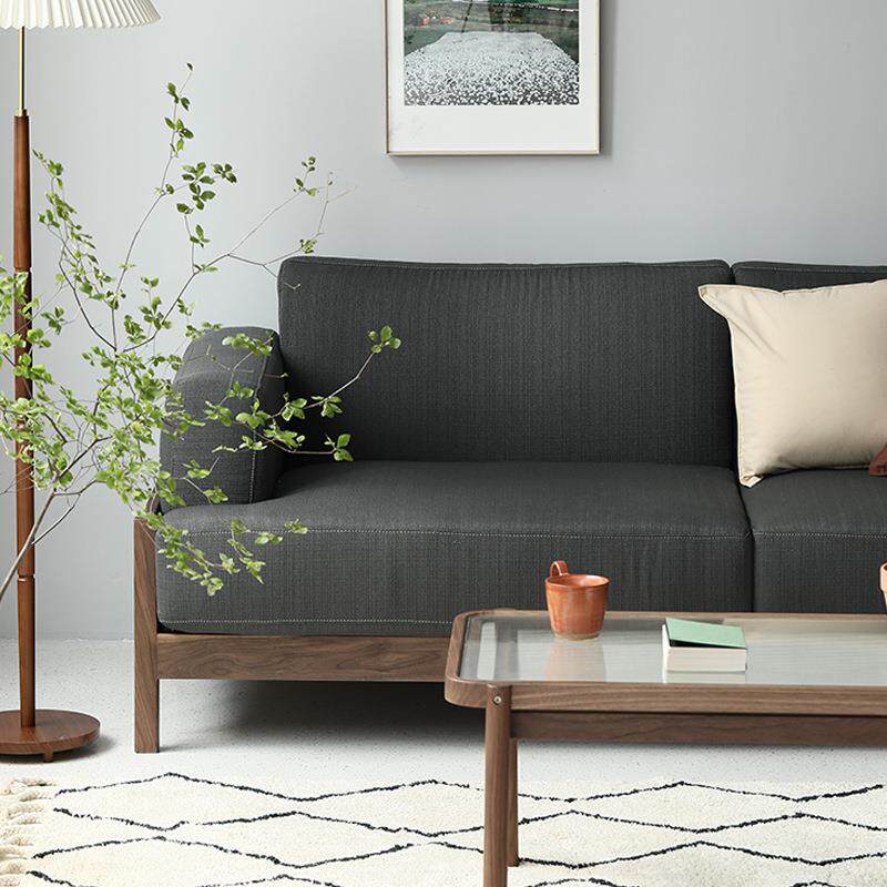 北欧简约黑胡桃木沙发全实木小户型客厅家具原木布艺现代组合