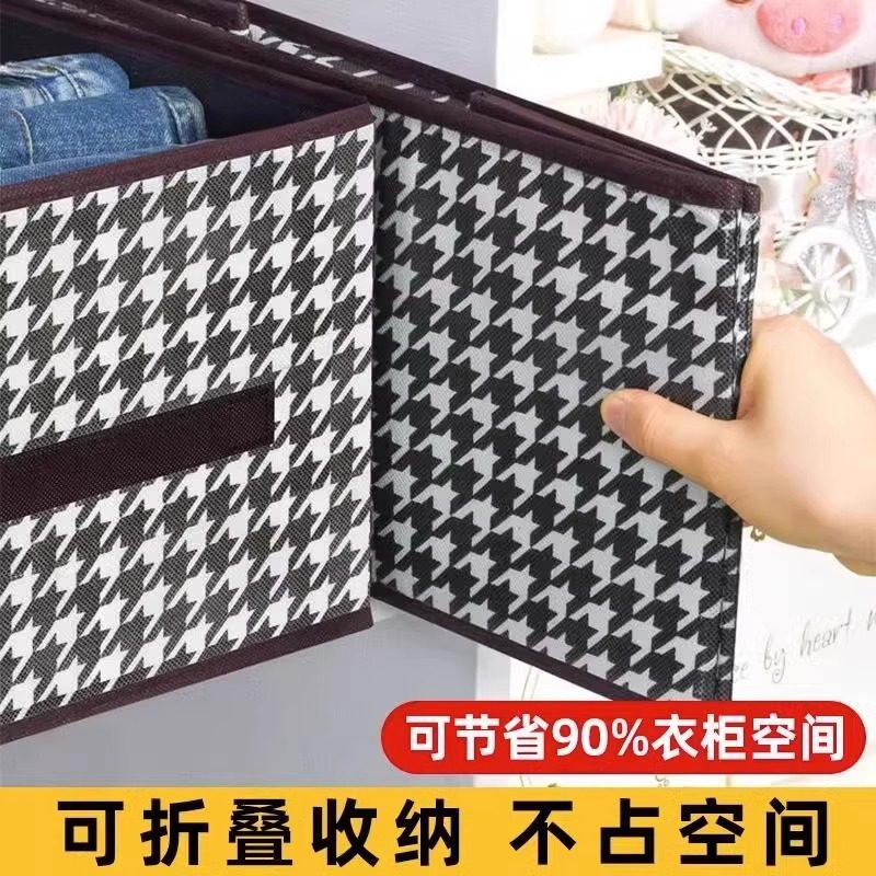 整理箱千鸟格收纳盒可折叠装衣服内衣衣柜裤子布艺大容量储物昼夜