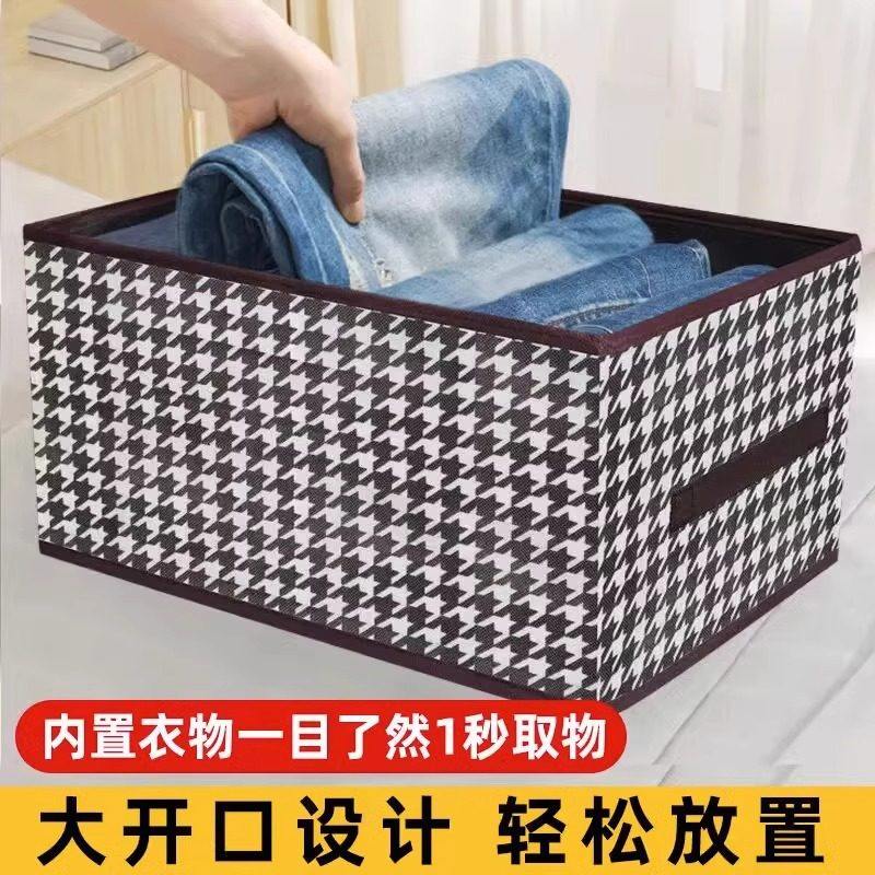 衣服收纳箱千鸟格家用衣柜分层整理收纳神器放衣物布艺折叠收纳筐